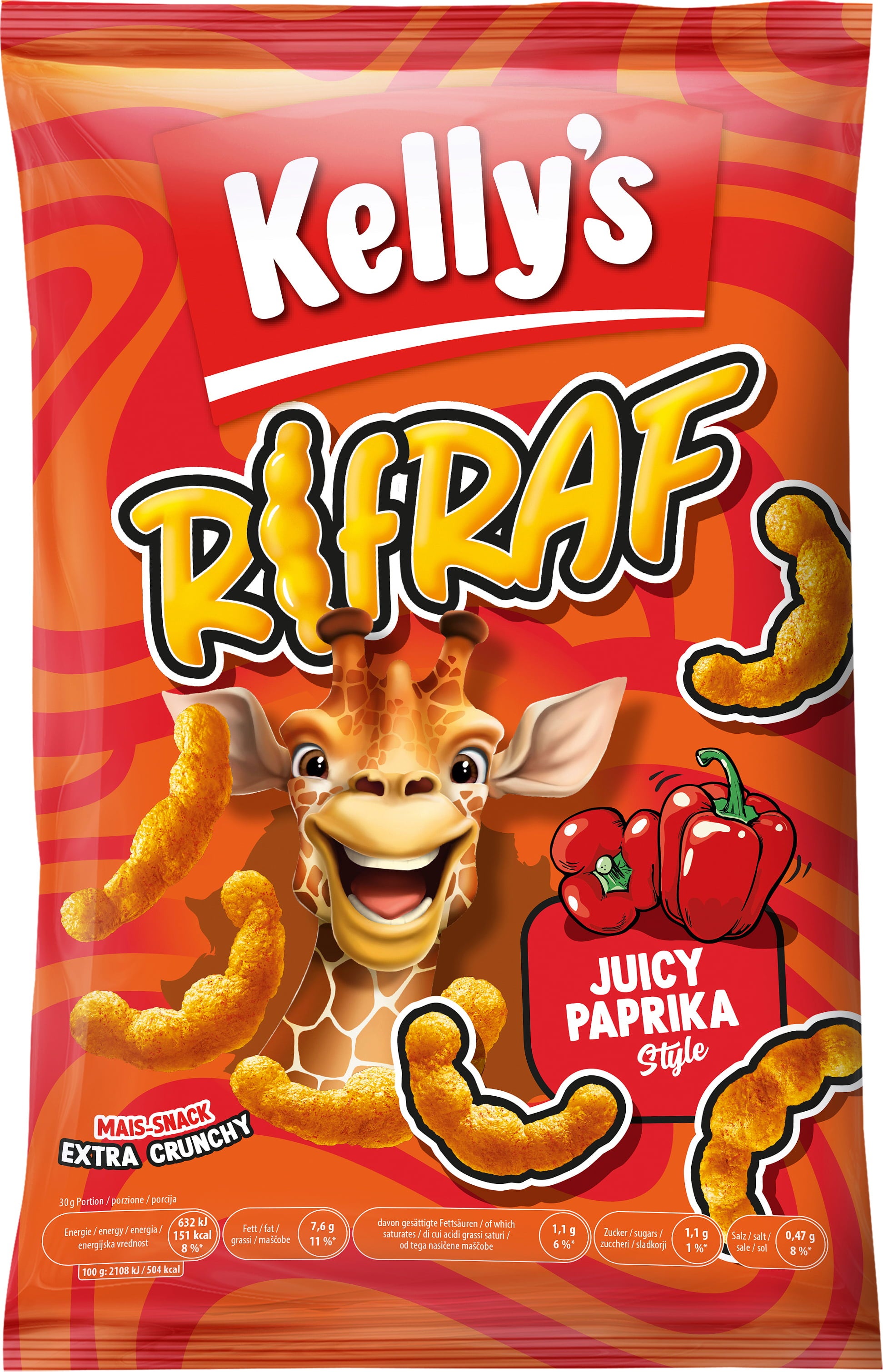 Mit Rifraf von Kelly's holst du dir einen ganz besonderen Snackgenuss zu dir nach Hause! Hergestellt aus köstlichem Maisgrieß ist Rifraf besonders crunchy und sorgt mit seiner innovativen Smile-Form für gute Laune!