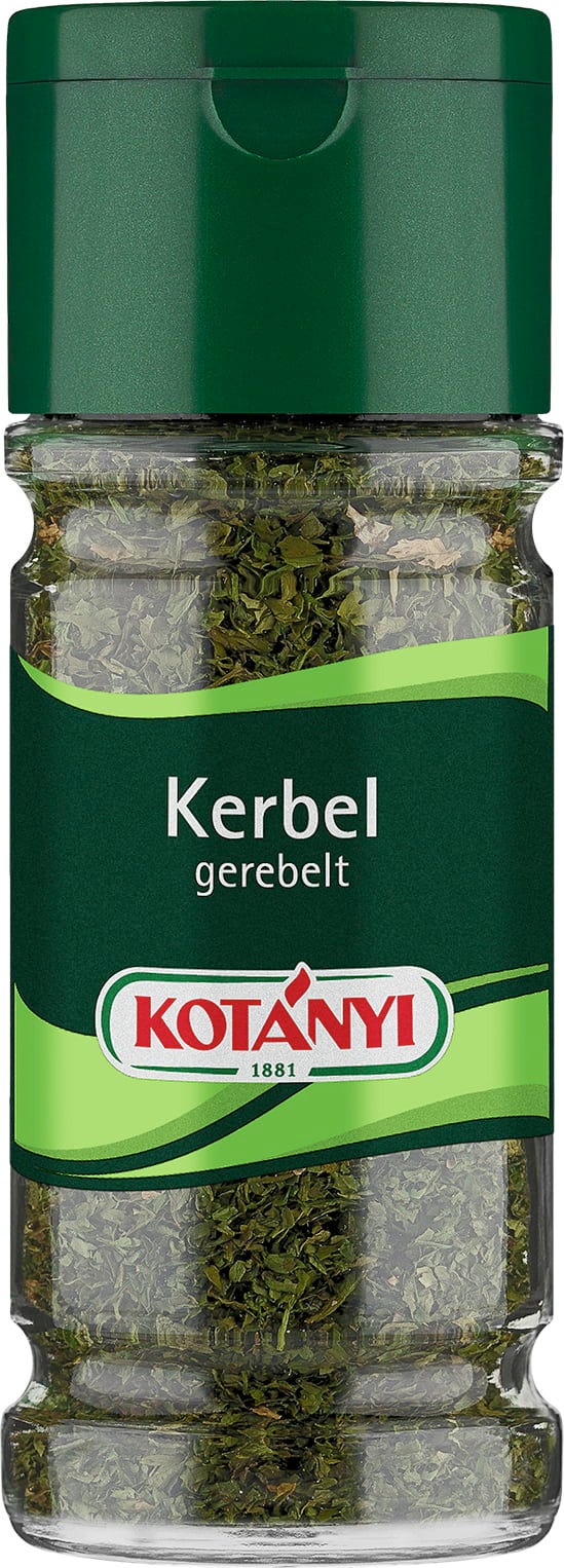 Kerbel schmeckt leicht süßlich wie ein Mix aus Petersilie und Anis. Seine zarten Blättchen werden für KOTÁNYI Kerbel gerebelt besonders schonend getrocknet, damit sie durch kurzes Einweichen ihr volles Aroma wie frisch entfalten.