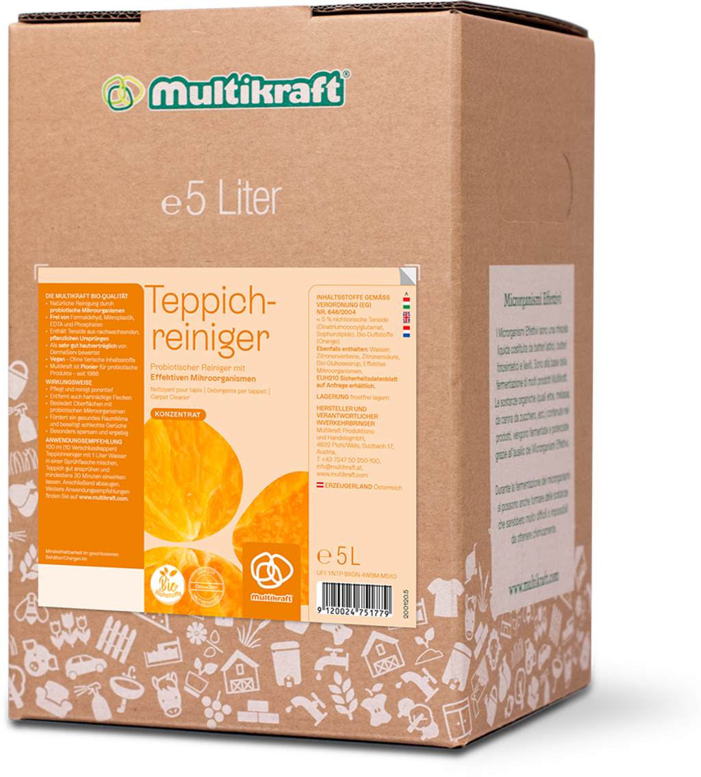 Der eMC Teppichreiniger sorgt dafür, dass Teppiche und Teppichböden wieder strahlen! Die enthaltenen probiotischen Mikroorganismen entfernen Flecken und schaffen langanhaltende Sauberkeit, da sie auf den Textilien haften bleiben und aktiv werden, wenn neue Verschmutzungen auftreten. Der Reiniger neutralisiert unangenehme Gerüche wirkungsvoll und verleiht den Textilien einen frischen Zitrusduft.