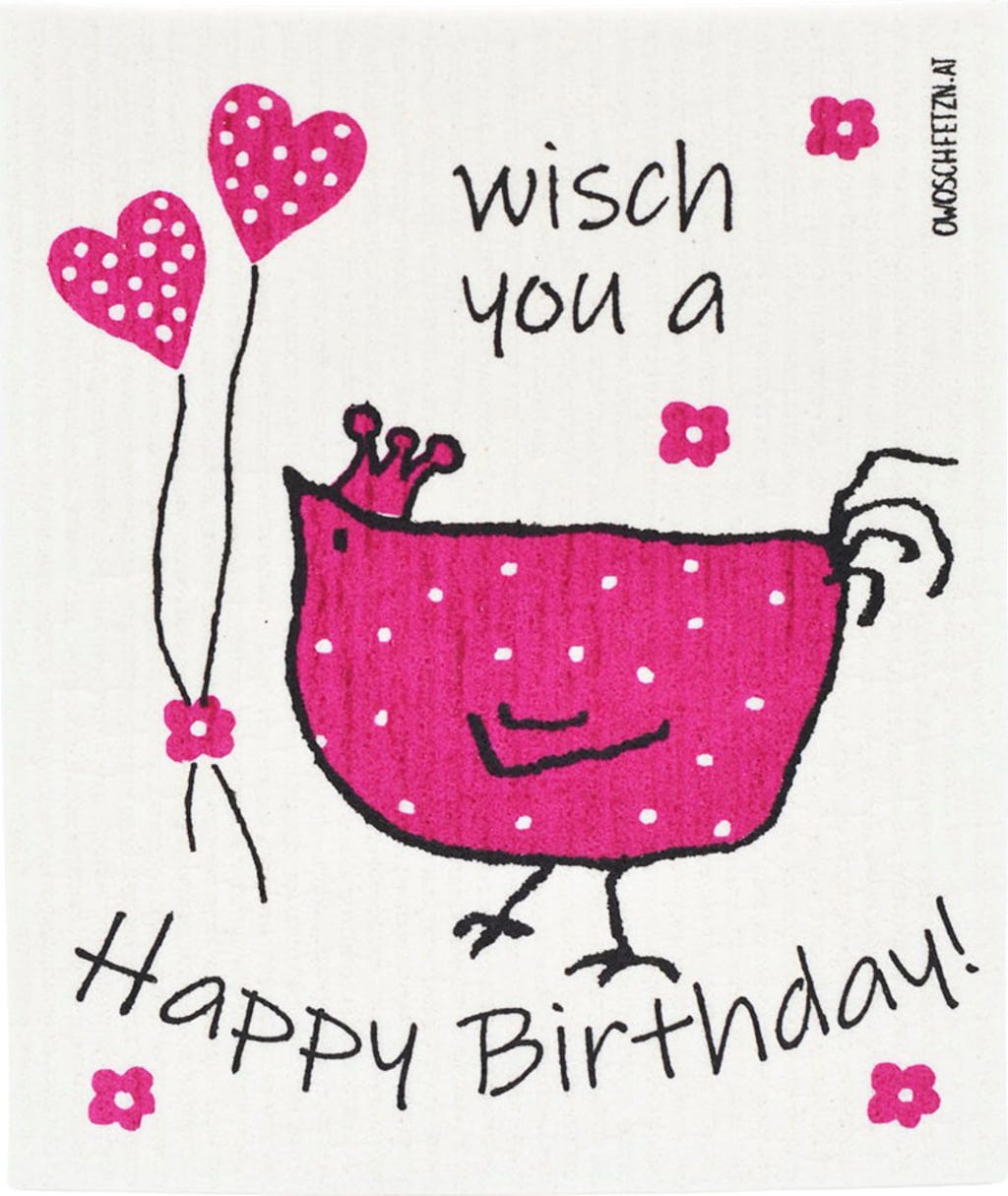 OWOSCHFETZN Schwammtuch "Henne Berta - Happy Birthday", Rosa