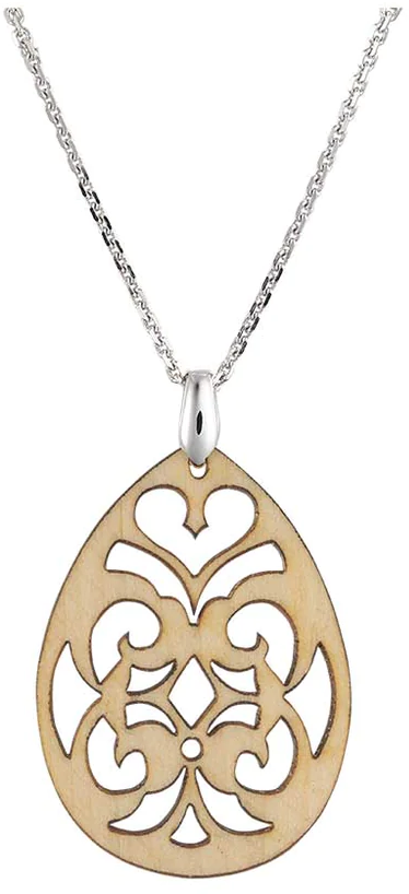 Die exquisit gefertigte Waidzeit Silberkette (925) mit ihrem atemberaubenden Ornament ist ein wahres Meisterwerk, welches den Namen "Bohéme" trägt. Diese Kette wird ausschließlich aus dem feinsten Zirbenholz Österreichs hergestellt und zu einem filigranen und bezaubernden Schmuckstück für Damen verarbeitet. Der federleichte Anhänger zieht bewundernde Blicke auf sich und eignet sich perfekt als Geschenk für die anspruchsvolle Damenwelt. Die Verpackung dieser einzigartigen Boheme Kette erfolgt vollständig ohne Plastik in einer edlen Holzschatulle.
