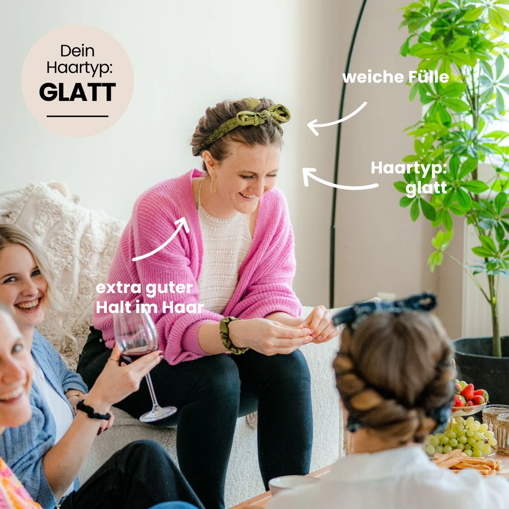 Auch mit glattem Haar kannst du dir deinen Wunsch nach einer vollen Lockenmähne ganz einfach erfüllen! Mit dem Lockenband von lotta curls funktioniert das quasi im Schlaf. Über Nacht sorgt es für wunderschöne Locken in den unterschiedlichsten Ausprägungen. Und das ganz ohne Hitze oder dein Haar zu beschädigen. Es empfiehlt sich, das Band über Nacht zu tragen, aber auch tagsüber sieht es super trendy aus.