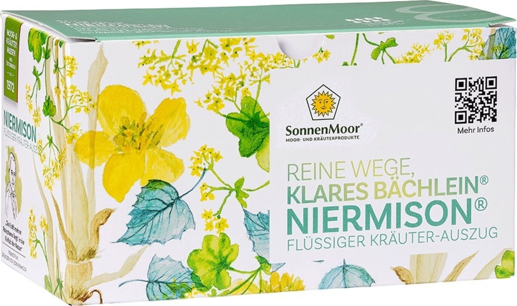 Niermison ist ein rein natürliches Erzeugnis aus dem Hause SonnenMoor, das auf einer sorgfältig abgestimmten Rezeptur basiert. Die flüssige Mischung vereint die Eigenschaften von zehn Kräutern wie Labkraut, Birke, Käsepappel, Frauenmantel und Zinnkraut in einem hochwertigen Auszug.