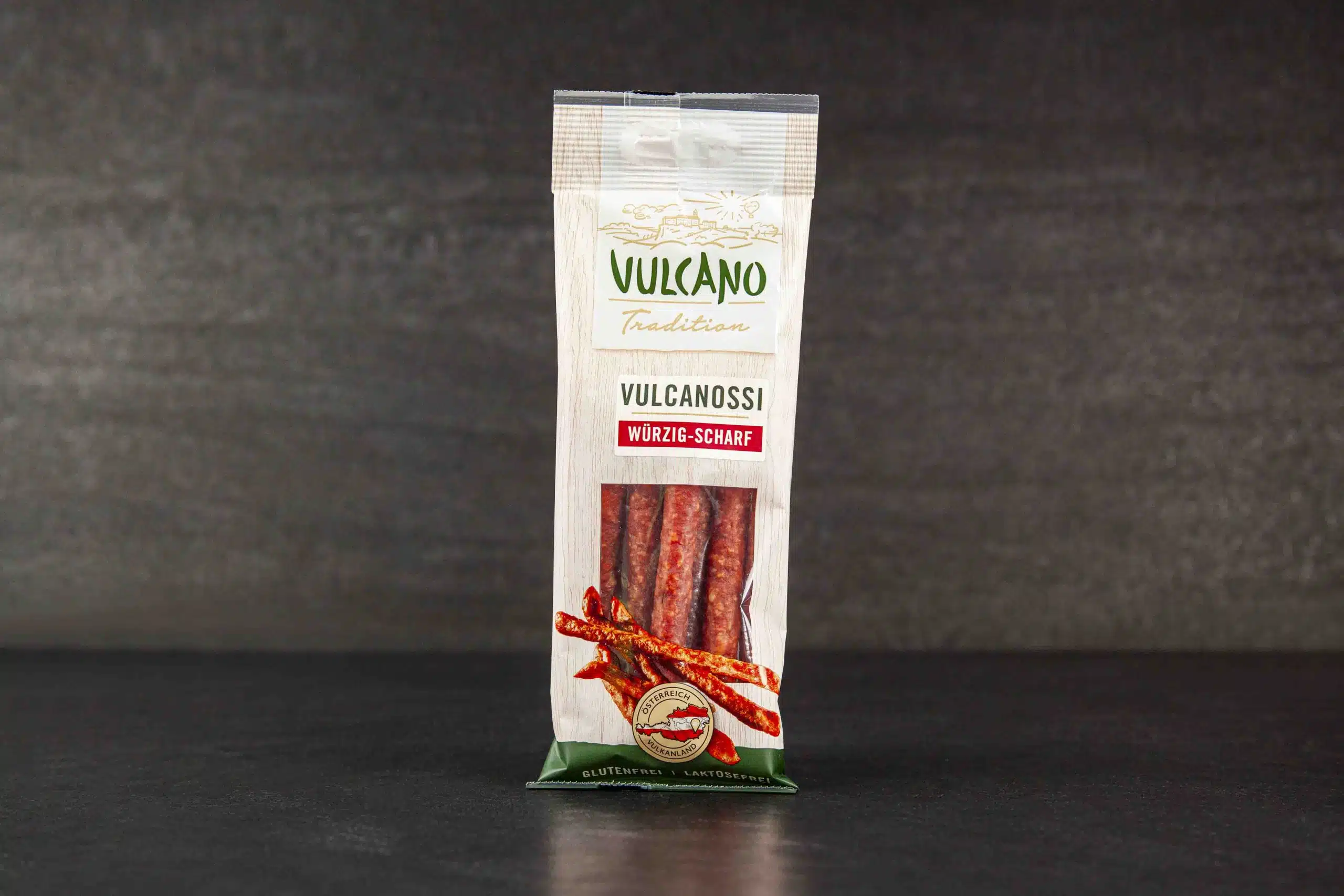 Die Vulcanossi "würzig-scharf" von Vulcano sind pikant, und sorgen mit dem Hauch von Rauch für das angenehm-würzige Geschmackserlebnis. Hergestellt aus bestem Schweinefleisch und Speck, mit edlen Gewürzen!