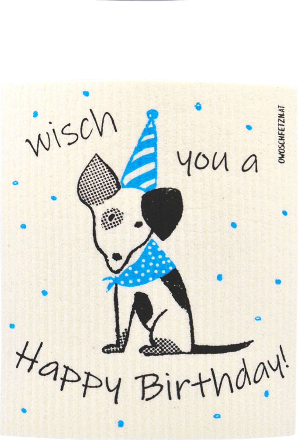 OWOSCHFETZN "Lucky Dog - Happy Birthday!" Sponge Cloth , Blue