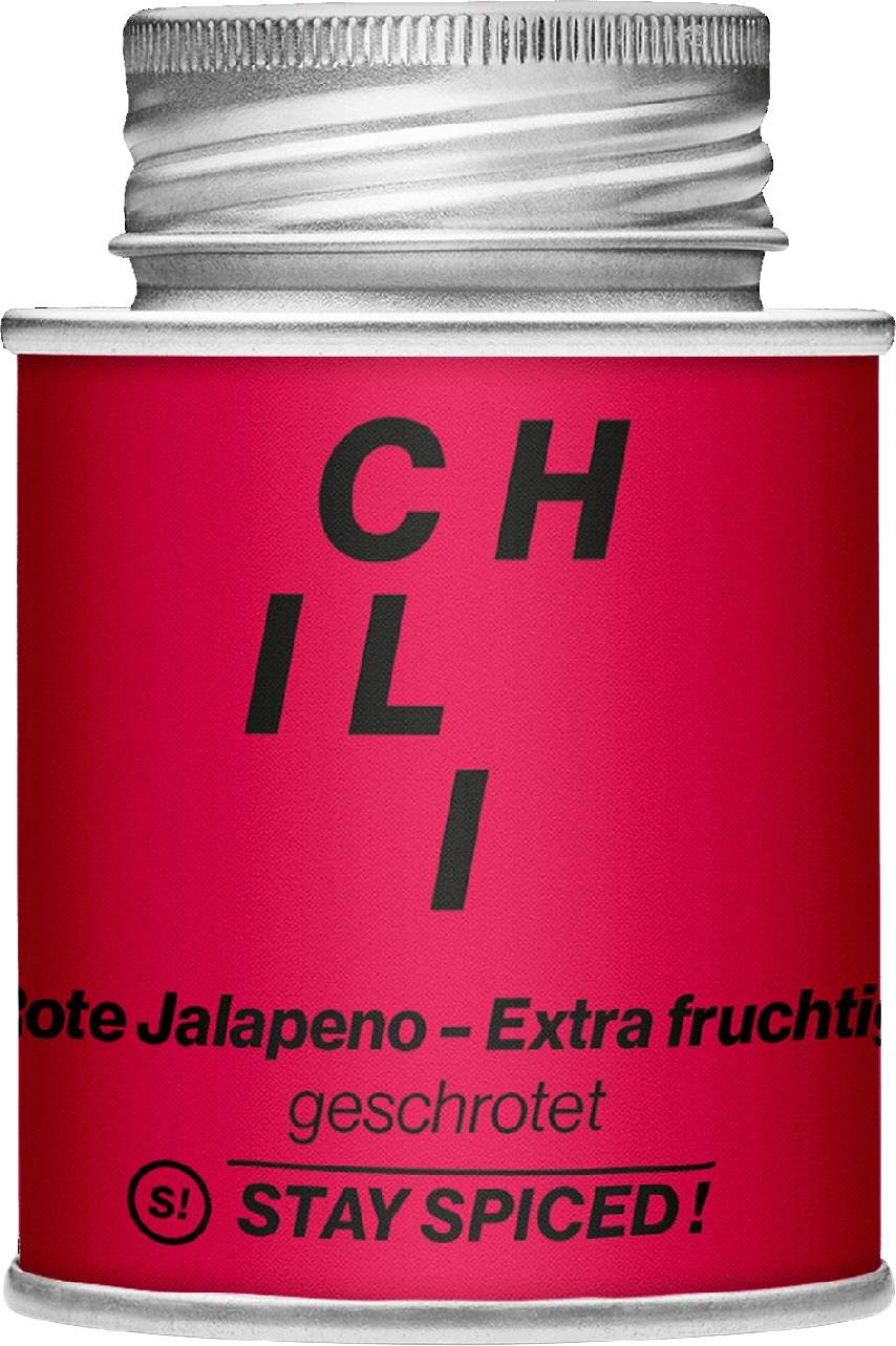 The slightly coarser flakes of the red jalapeno chilli by Stay Spiced! are particularly suitable as a finishing spice on seafood, fish and meat dishes.