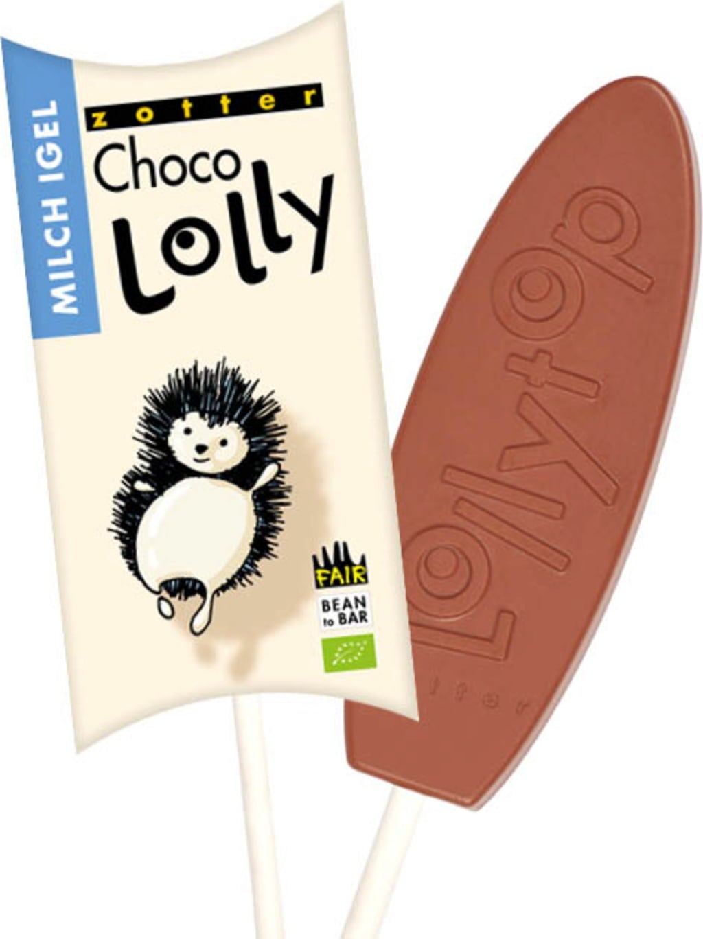 The "Milk Hedgehog" Choco Lolly by Zotter contains milk chocolate with a 35% cocoa content and high-quality organic whole milk powder from mountain farms in the Tyrolean Alps.
