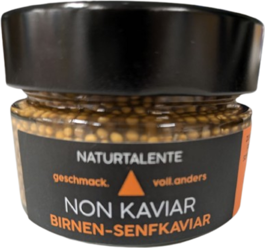 31 % Mustard seed, NON Essig vinegar salad seasoning (47 % Pear juice, 31 % Pear vinegar, Lemon juice, Agave syrup, Spices), Gelling agent (Pectin)
