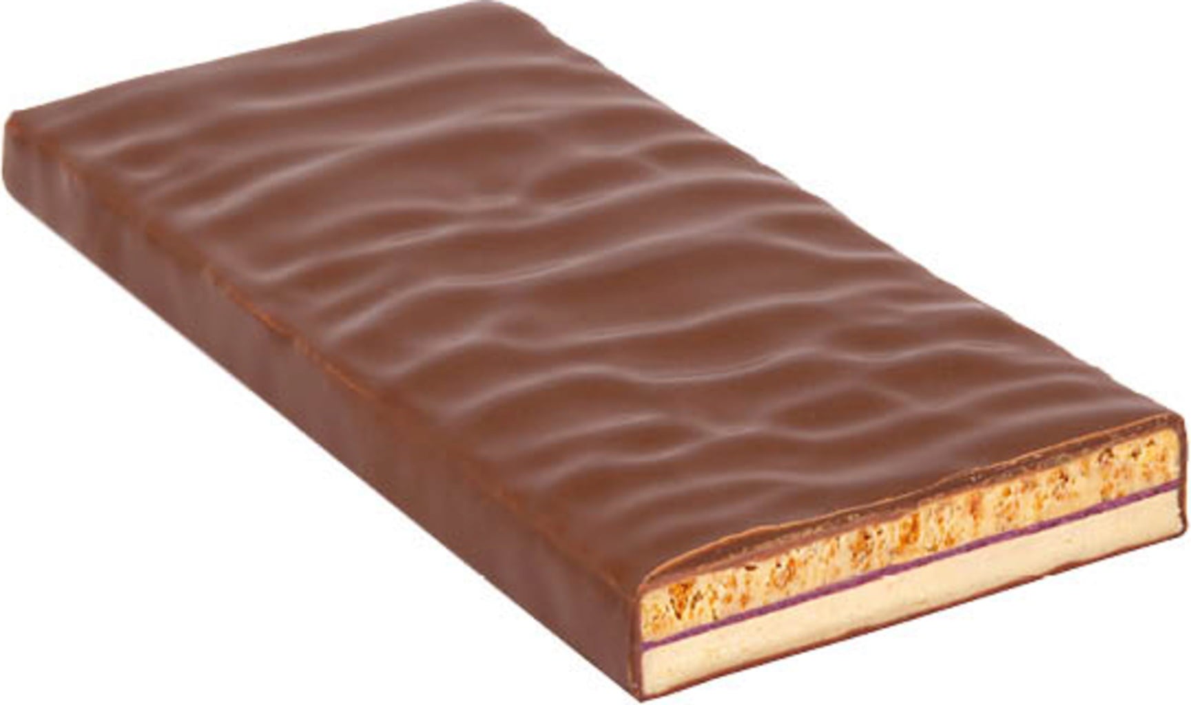 This hand-scooped chocolate from Zotter combines dark milk chocolate with a layer of crunchy biscuit almond nougat and a layer of cheesecake ganache made from quark cheese, white chocolate and yoghurt couverture. A thin layer of blueberry couverture is hidden between the two layers. Delicate notes of gingerbread aroma caress the palate with every bite.