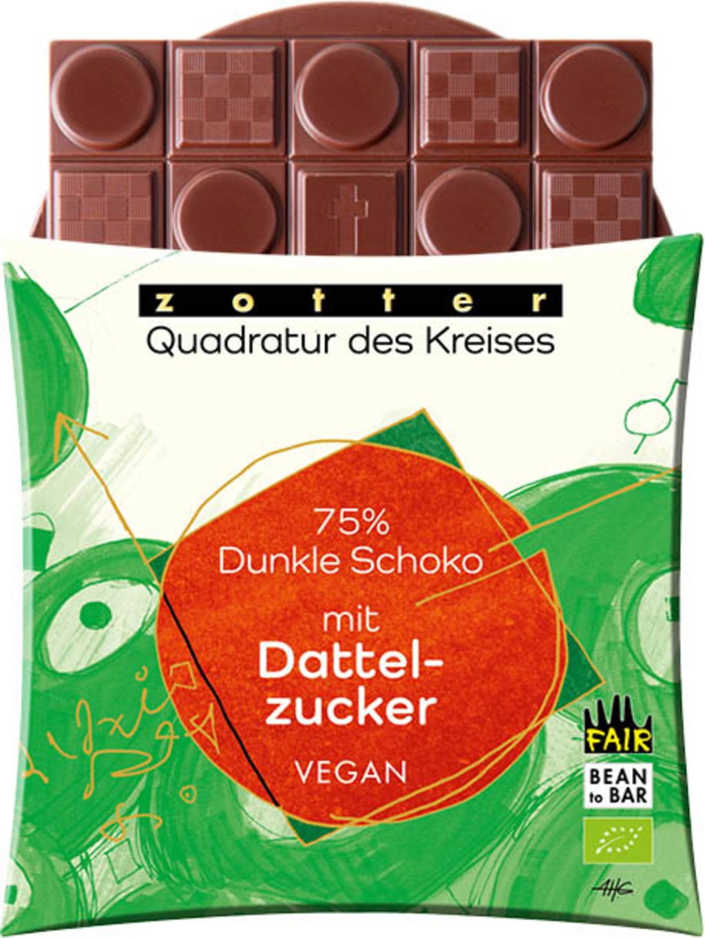 Zotter Schokoladen Organic Squaring the Circle - 75% Dark Chocolate with Date Sugar, 70 g