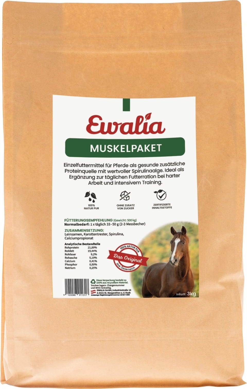 The Muscle supplement by Ewalia is suitable for support in daily training. Spirulina algae and flaxseed powder support the natural muscle metabolism of your horse!
