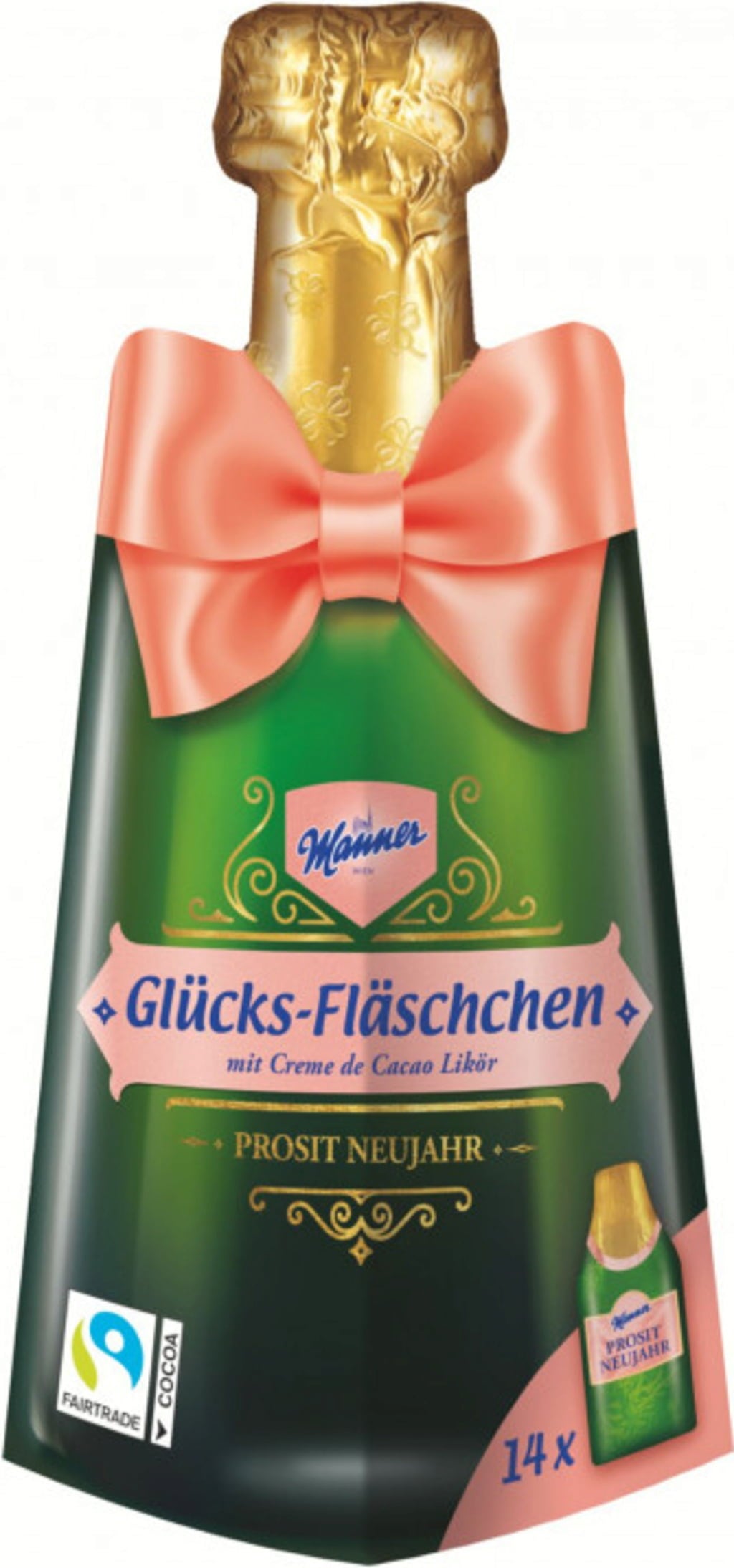 Happy New Year! With these little cheerful little bottles, you can ring in the new year in a very sweet way! Crispy chocolate on the outside and delicious creme de cacao liqueur on the inside make each of these little bottles a very special treat.