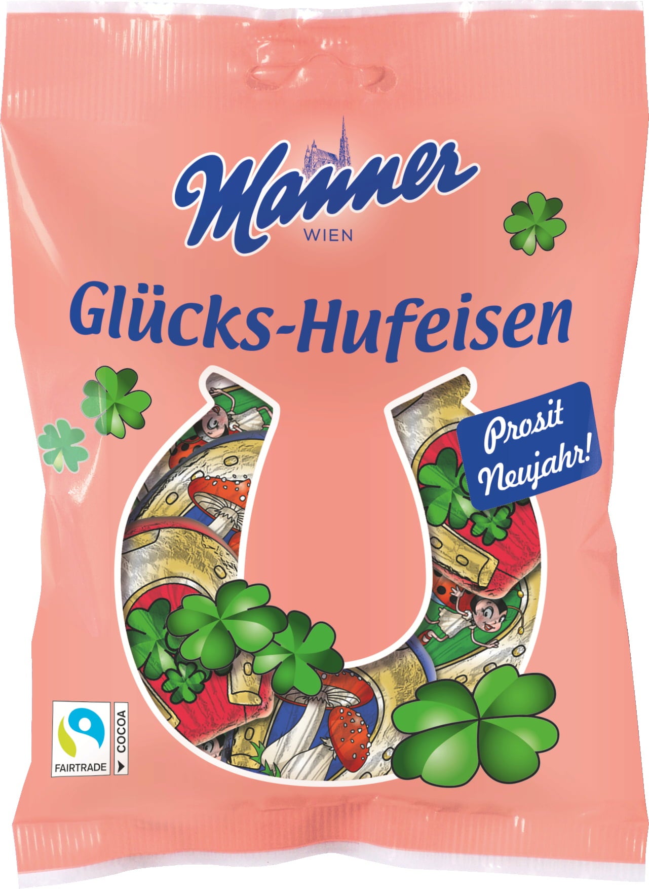 The Horseshoe Good Luck Charms with classic good luck symbols such as ladybug, shamrock and lucky mushroom are always welcome - whether as a table decoration at a New Year's Eve party or as a little gift of good luck to family, friends and colleagues: The pack contains 10 fine milk chocolate bars in a horseshoe shape.