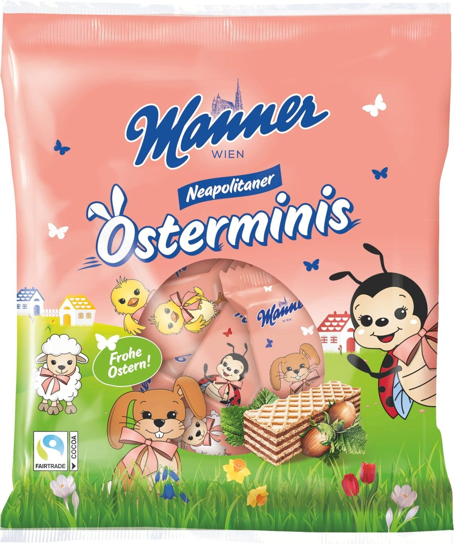 Manner gives the Easter bunny a helping hand and fills the Easter basket with the popular Neapolitan mini wafers! Crisp wafers with a sweet hazelnut cocoa cream filling come in the perfect size here - great for coffee, a little snack between meals or as a bedtime treat.