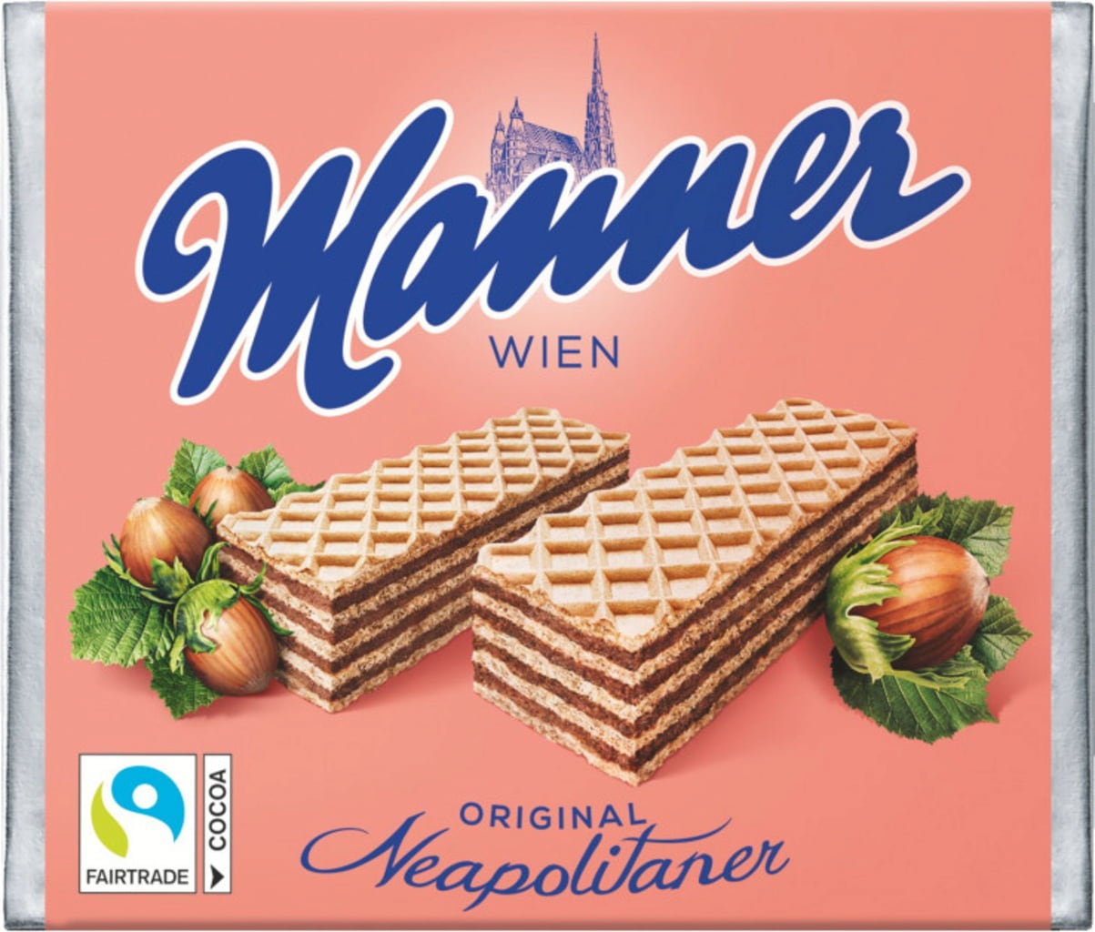 Neapolitan Wafers are a Manner speciality since 1898. The delicious treats are composed of 5 crispy wafer layers filled with a sweet hazelnut - chocolate cream. The bite-size pieces are perfectly packaged so that they can be resealed to stay fresh for longer. Over 63 million of this Austrian classic are sold worldwide every year!