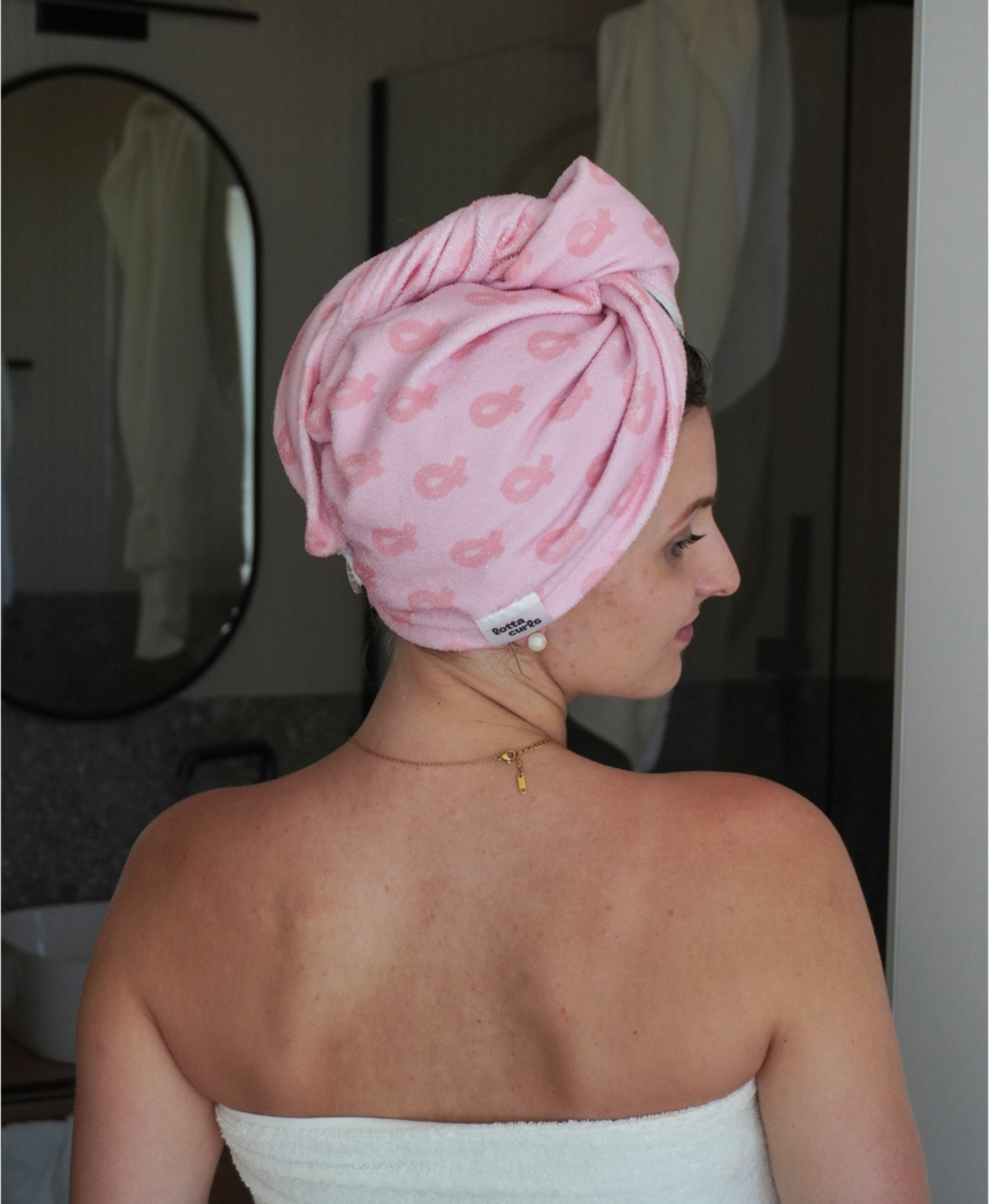This hair turban dries the hair rapidly since the microfibre material used is particularly absorbent. The material is gentle on the hair, absorbs moisture quickly and does not cause friction which prevents hair breakage. The turban is light and comfortable to wear and ideal for use when applying hair masks.