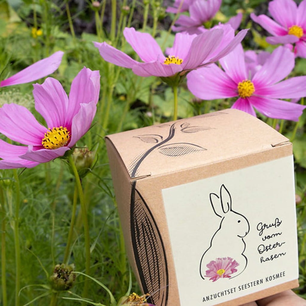 This year, the Easter Bunny brings beautiful flowers as a gift! This grow kit contains everything you need to sow and grow beautiful sea star cosmos flowers! This vibrant summer flower, often found in traditional cottage gardens, germinates quickly, is a prolific bloomer, and serves as a valuable source of food for beneficial garden insects such as bees and bumble bees.
