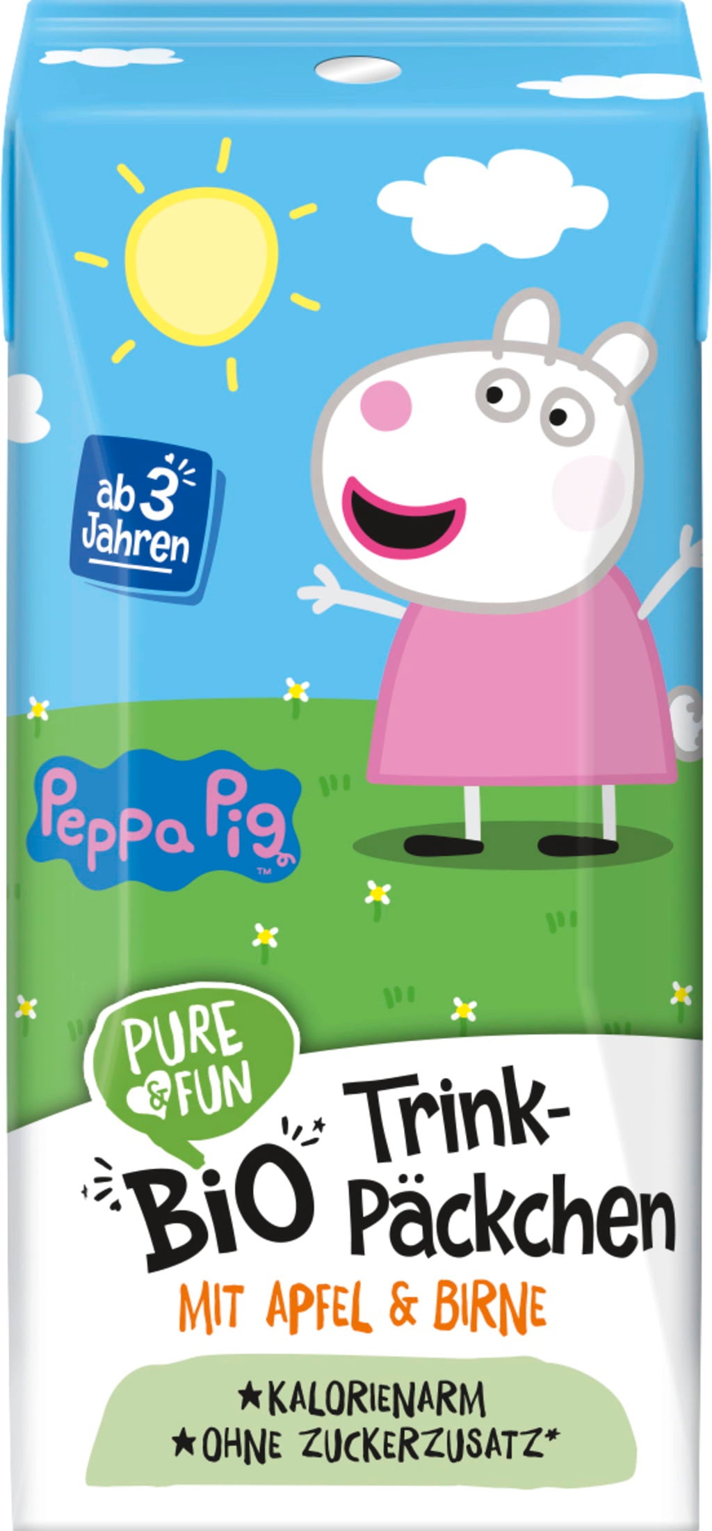 Whether at nursery, at home or playing outside - when thirst strikes, it has to be quick. A tasty, fruity organic drink with no added sugar is just the thing! And even better if you have three portions with you to share with your best friends. Our Peppa Pig organic drink pack in a practical 3-pack is a natural thirst quencher made from high-quality ingredients. Without carbon dioxide, without flavourings, but with a super fruity taste. The low-calorie refreshment for brave adventurers - with no added sugar.