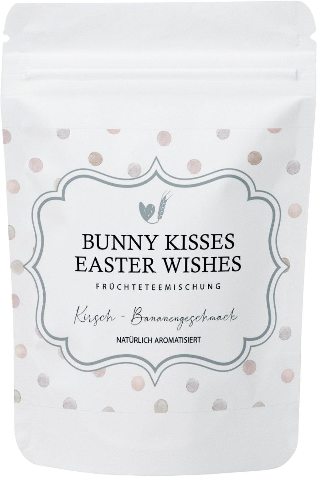 Avec l'infusion fruitée 'Bunny Kisses Easter Wishes', vous pouvez profiter d'une pause sucrée à tout moment de la journée. Le mélange contient, entre autres, de la pomme, des fleurs d'hibiscus et de l'églantier et possède la douceur naturelle des fruits, en particulier des cerises et des bananes. La tisane peut être dégustée chaude ou froide, selon les préférences.