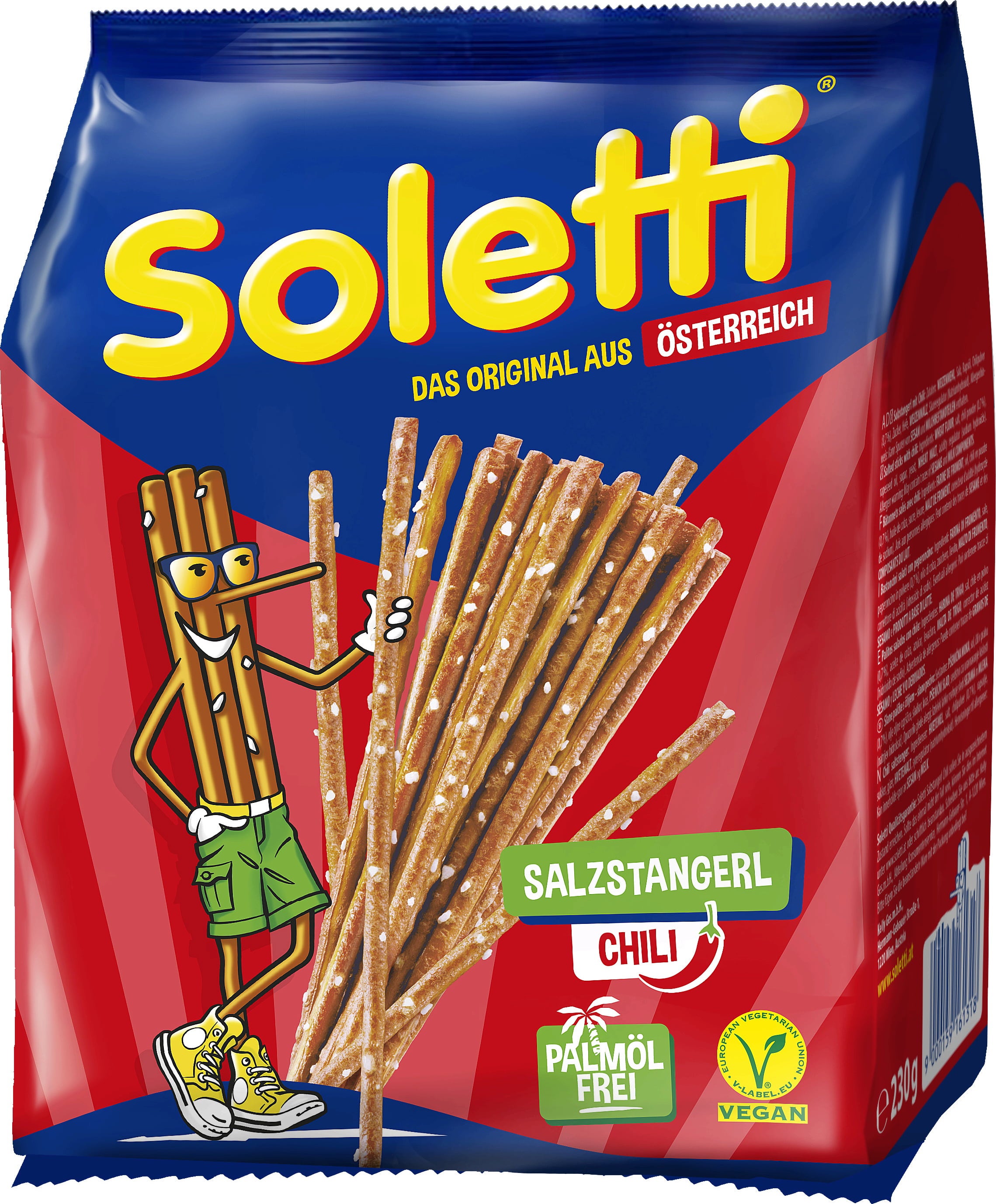 Avec cette recette, Soletti offre une alternative relevée aux bâtonnets salés traditionnels. Élaborés à partir de céréales autrichiennes et rehaussés de sel des Alpes, ils séduisent par leur note épicée apportée par une poudre de piment finement moulue.