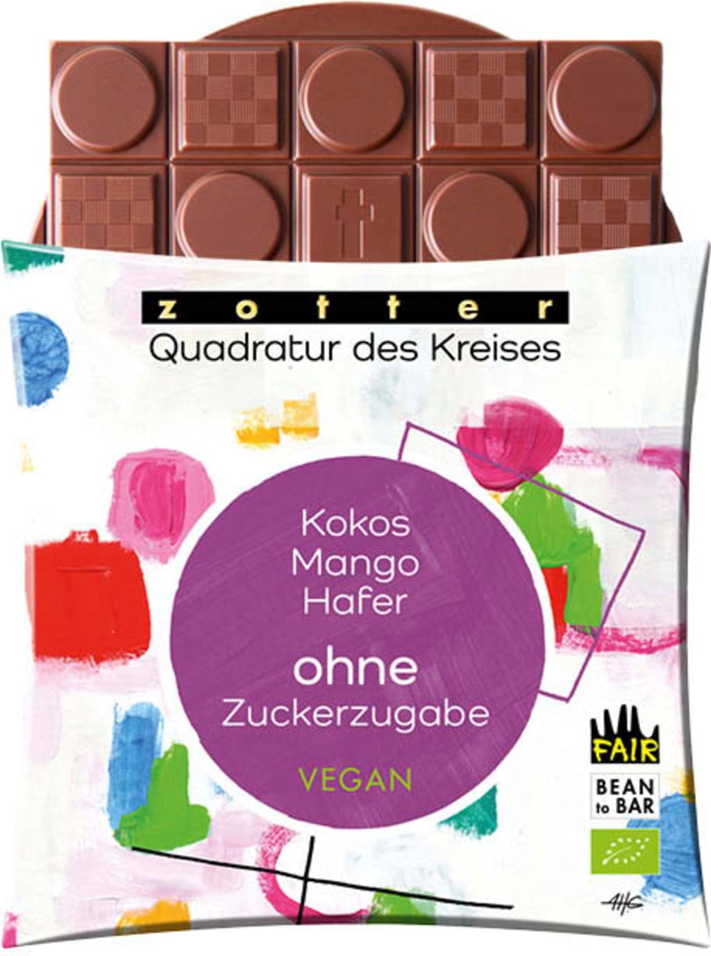 Zotter Schokoladen Bio Quadratur des Kreises – Coco, Mangue & Avoine sans Sucres Ajoutés, 70 g