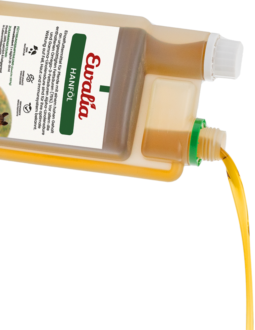 L'huile de chanvre d'Ewalia et ses acides gras oméga-3 acide alpha-linolénique et acide gamma-linoléique est connue pour ses propriétés optimales sur le pelage, la peau et le système immunitaire. L'huile de chanvre est 100 % naturelle et pressée à froid, de qualité alimentaire. Elle ne contient pas de quantités significatives de THC, mais des acides aminés essentiels, des vitamines, des antioxydants, des minéraux, des enzymes et des composés phytochimiques.