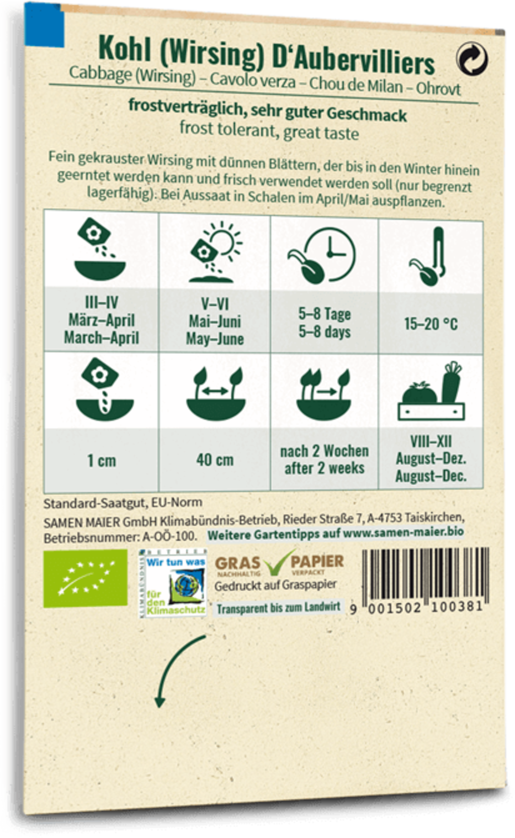 avis en français à propos du produit Samen Maier Chou "D'Aubervilliers" Bio
