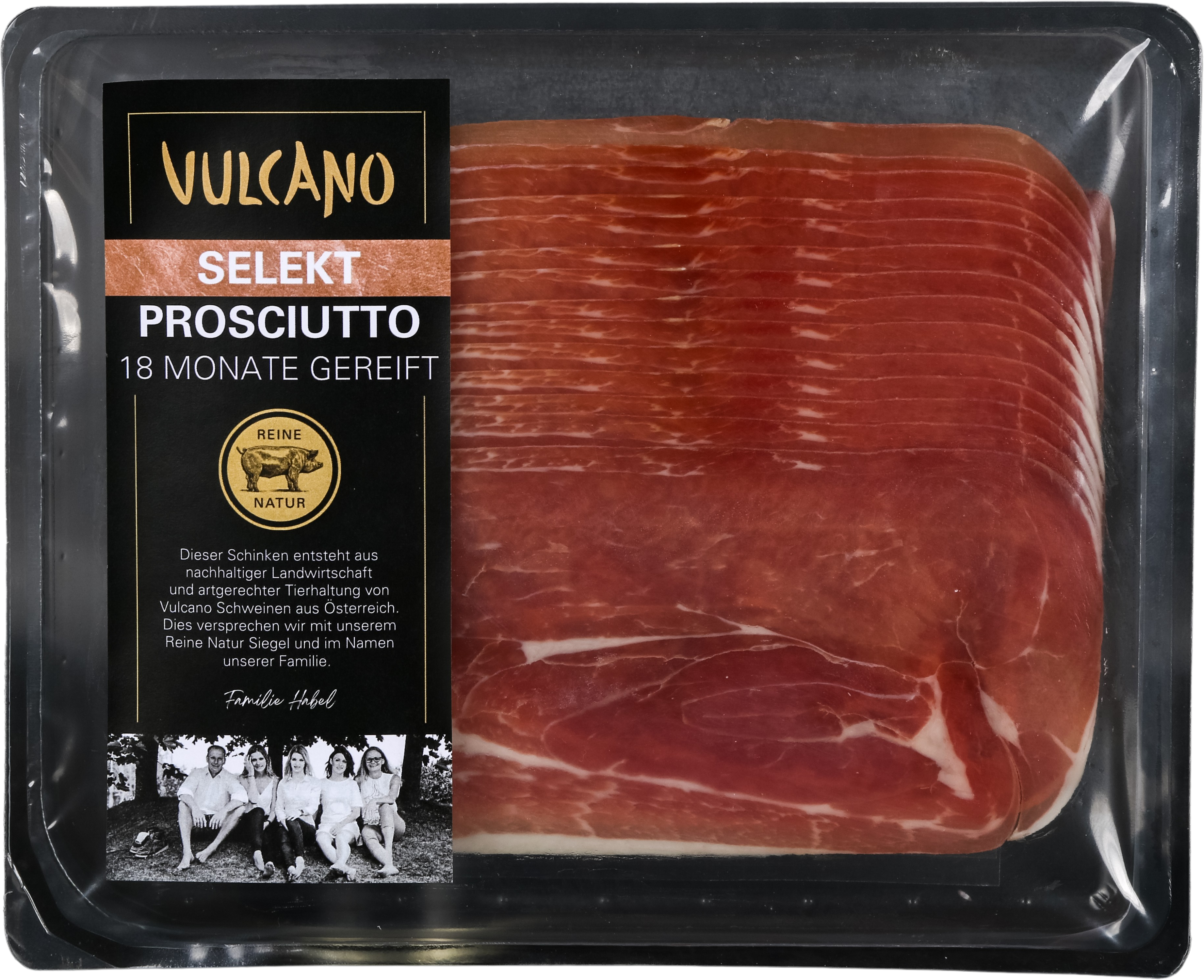 Le jambon cru Vulcano Selekt séduit par un savoir-faire artisanal d’exception et une viande d’une qualité irréprochable. Affiné délicatement pendant 18 mois, il développe un arôme unique – idéal pour les plateaux de charcuterie, la raclette ou simplement dégusté pur sur du pain frais.