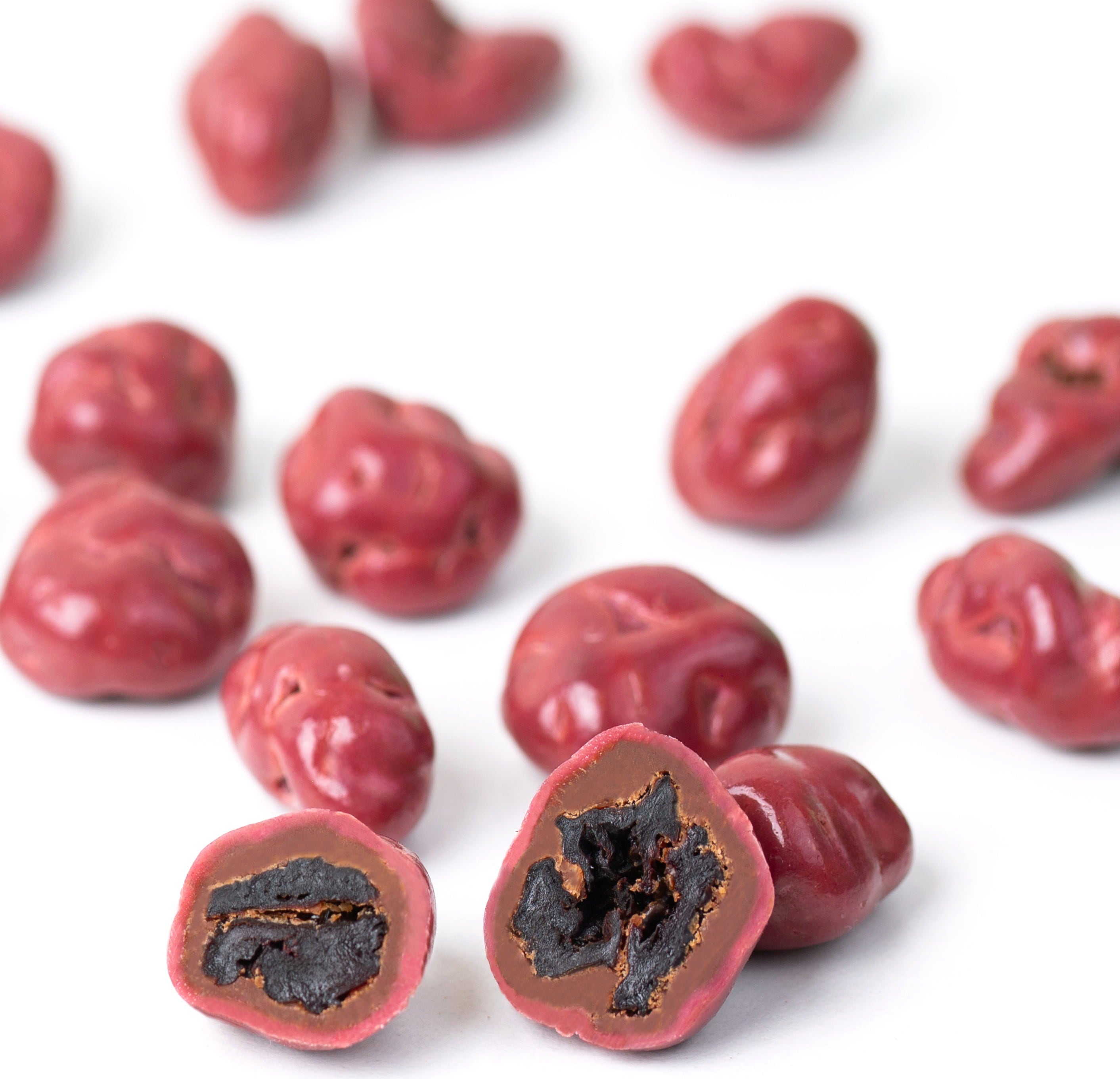 Ces petites bouchées allient à la perfection fruit et fondant pour une expérience irrésistible ! En leur cœur se cache une griotte acidulée et rafraîchissante, qui apporte une touche croquante et intensément fruitée.