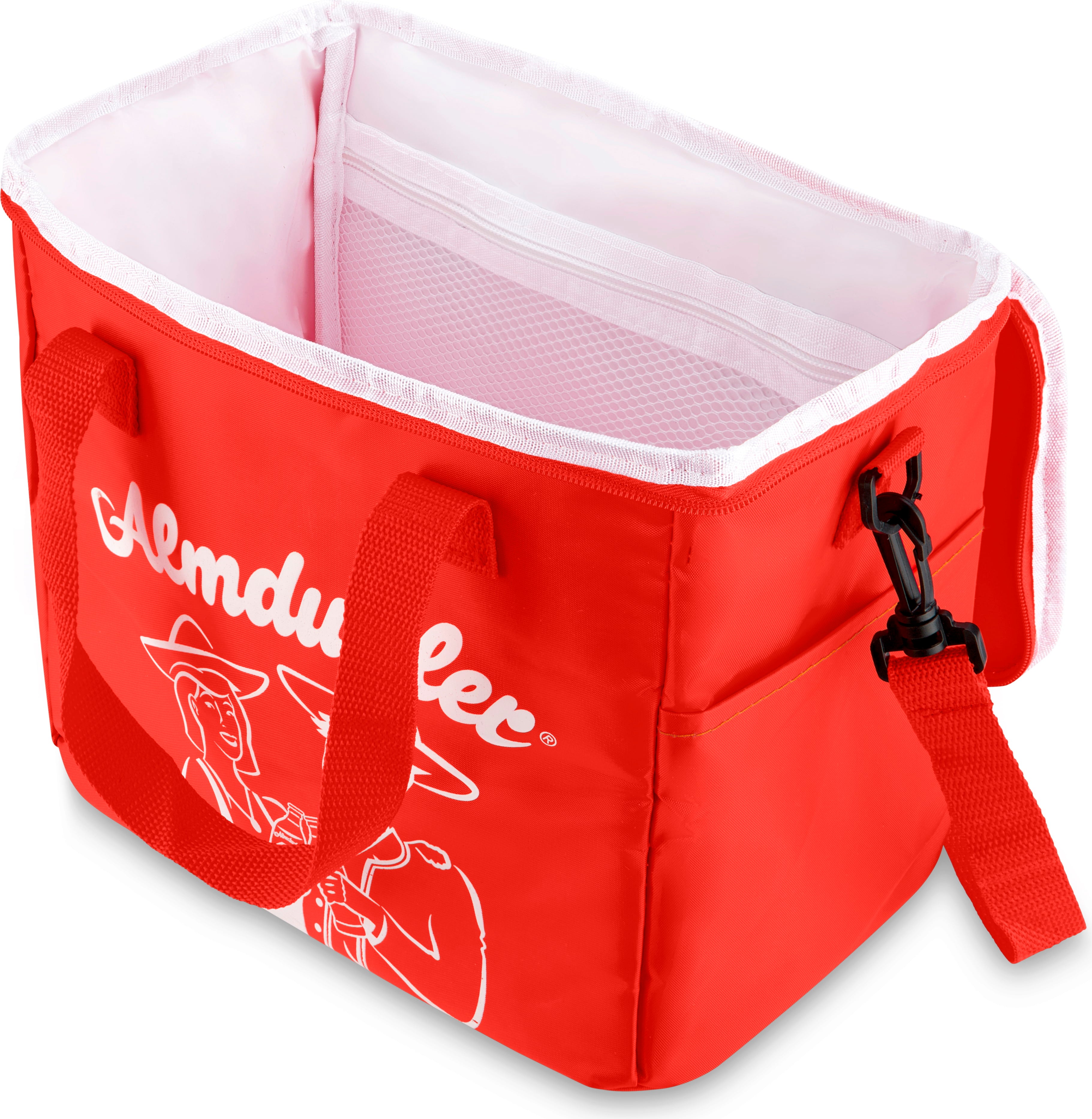 Az Almdudler piros hűtőtáskája az ikonikus Almdudler a népviseletes pár motívummal és Almdudler betűtípussal biztosítja a lehűtést a forró nyári napokon. A praktikus vállpántnak és fogantyúnak köszönhetően a műanyag hűtőtáska nagyon könnyen kezelhető, és helyet kínál 6 üveg 0,5 literes Almdudler számára. Az Almdudler 24 x 17 x 27 cm méretű hűtőtáska tökéletes a tónál töltött szép napokra.