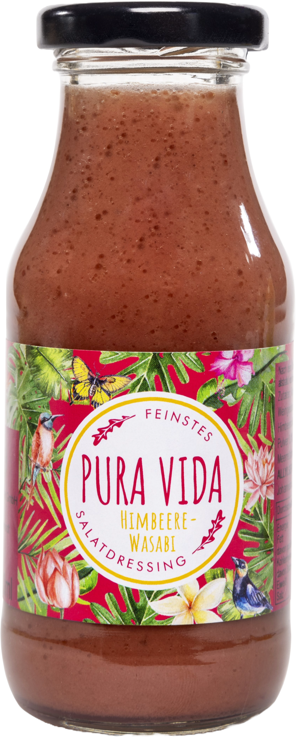 PURA VIDA salátaöntet igazi ínyenceknek! Ez a salátaöntet a gyümölcsös málnát a wasabi páratlan ízével ötvözi. Tökéletes választás a bogyós gyümölcsök szerelmeseinek! Egzotikus megjelenésének köszönhetően remek ajándék is lehet szeretteinek.