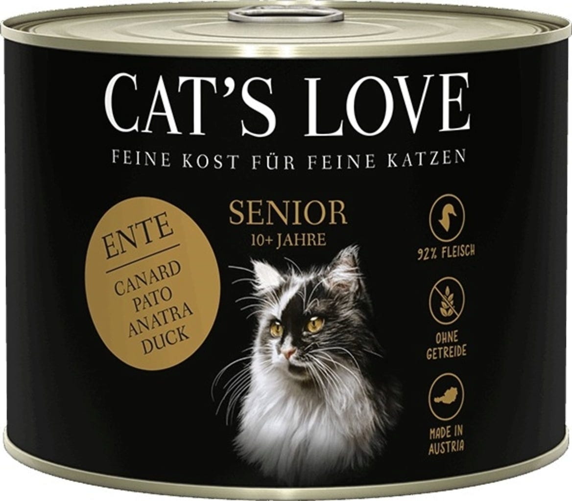 Ahogy a macskák öregszenek, táplálkozási igényeik is megváltoznak. A Cat's Love Seinor Edition olyan receptúrát biztosít, amely az idősebb macskák táplálkozási igényeihez igazodik. Kacsa és pulyka értékes pórsáfrányolajjal, lestyánnal és fontos ásványi anyagokkal kombinálva. A maximális ínyenc élvezetért!