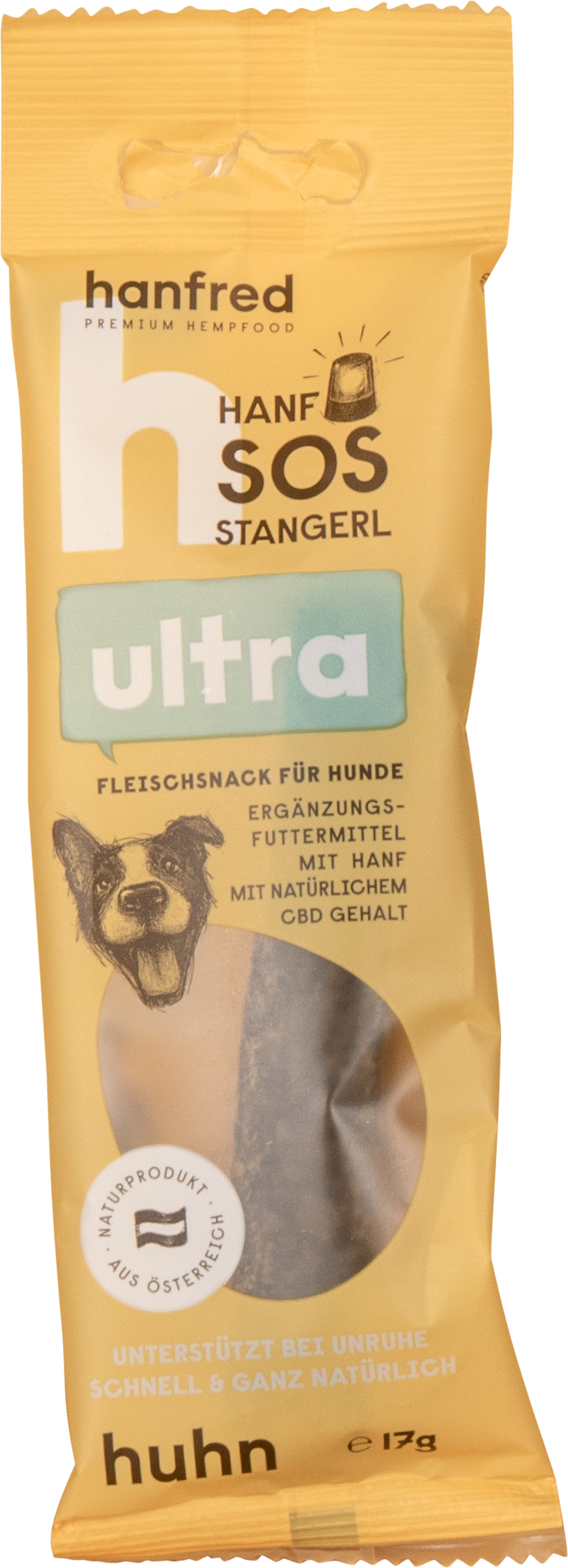 Az SOS Ultra rágópálcikák 25% kendert tartalmaznak, és alkalmasak kiegészítő eledelként kutyája számára - különösen utazáskor vagy szokatlan helyzetekben. Szaftos húsból és kenderporból készült, felesleges adalékanyagok nélkül.