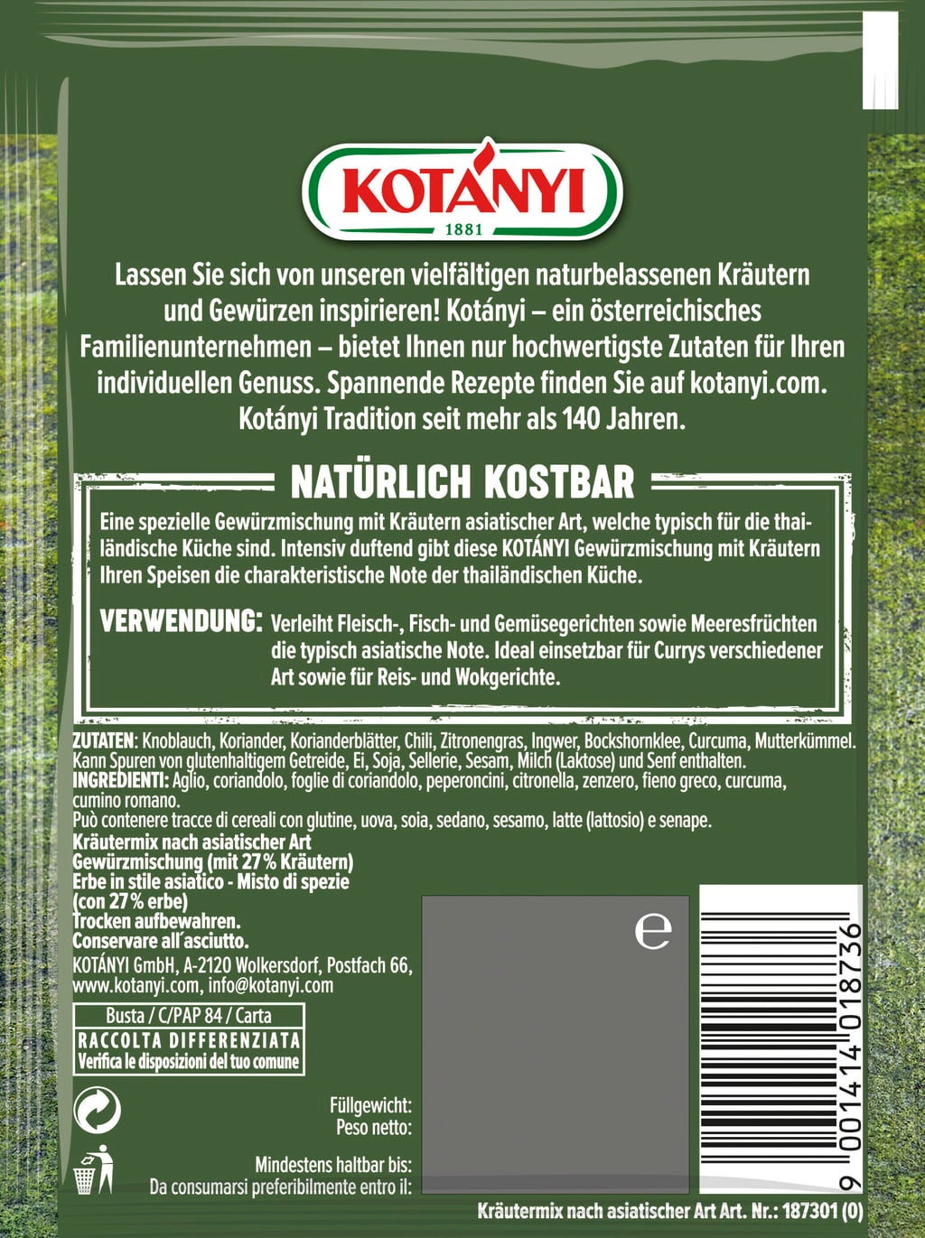 Speciális fűszerkeverék ázsiai fűszernövényekkel. Intenzív illatú, karakterest ízt biztosít a thai ételeknek.