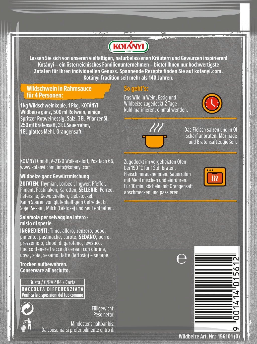 A KOTÁNYI vadpáccal kiváló klasszikus vadételek készíthetőek. A finom fűszernövények és a finom fűszerek kiegyensúlyozott keveréke különösen ízletes és puha falatokat eredményez.