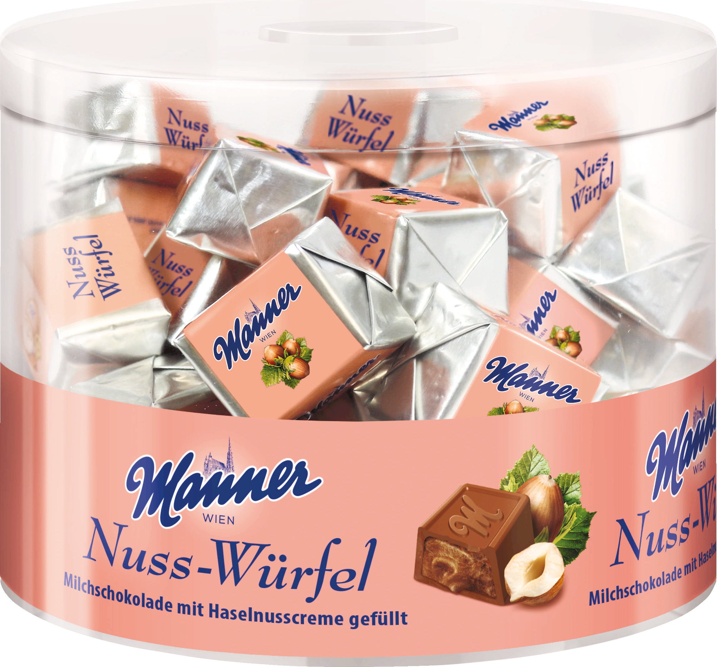 Finom mogyorós nugátkrém ropogós mogyoródarabokkal, szájba olvadó tejcsokoládéval bevonva: A nugát, a mogyoró és a csokoládé minden rajongója megtalálja a számítását a Manner Mogyorós kockákkal.