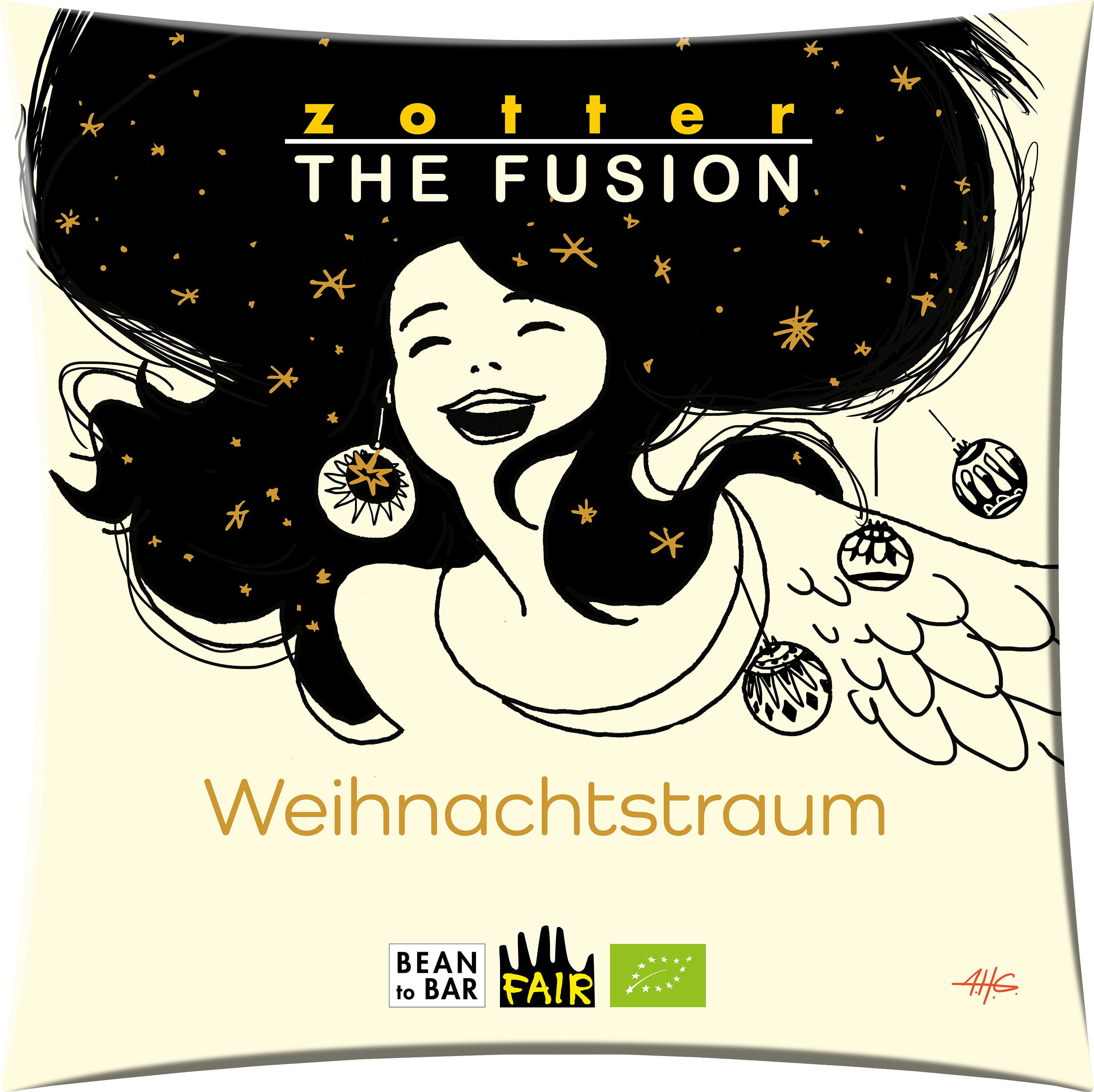 Ez a 70%-os kakaótartalmú étcsokoládé fagyasztva szárított narancsléből és maracujából készült gyümölcsös kuvertürrel ízesített. Savanykás-édes csokoládés öröm, különösen lágy olvadással. A szelet ezt a benne lévő tiszta kakaóvajnak köszönheti. Igazi karácsonyi álom - azonban az ünnepek előtt is nagyon finom!