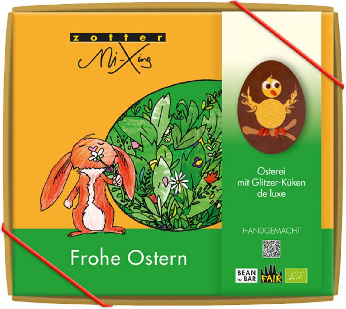Vásárlói vélemény magyar nyelven: Zotter Schokoladen Bio MiXingo Húsvéti tojás csillogó csibével - de Luxe