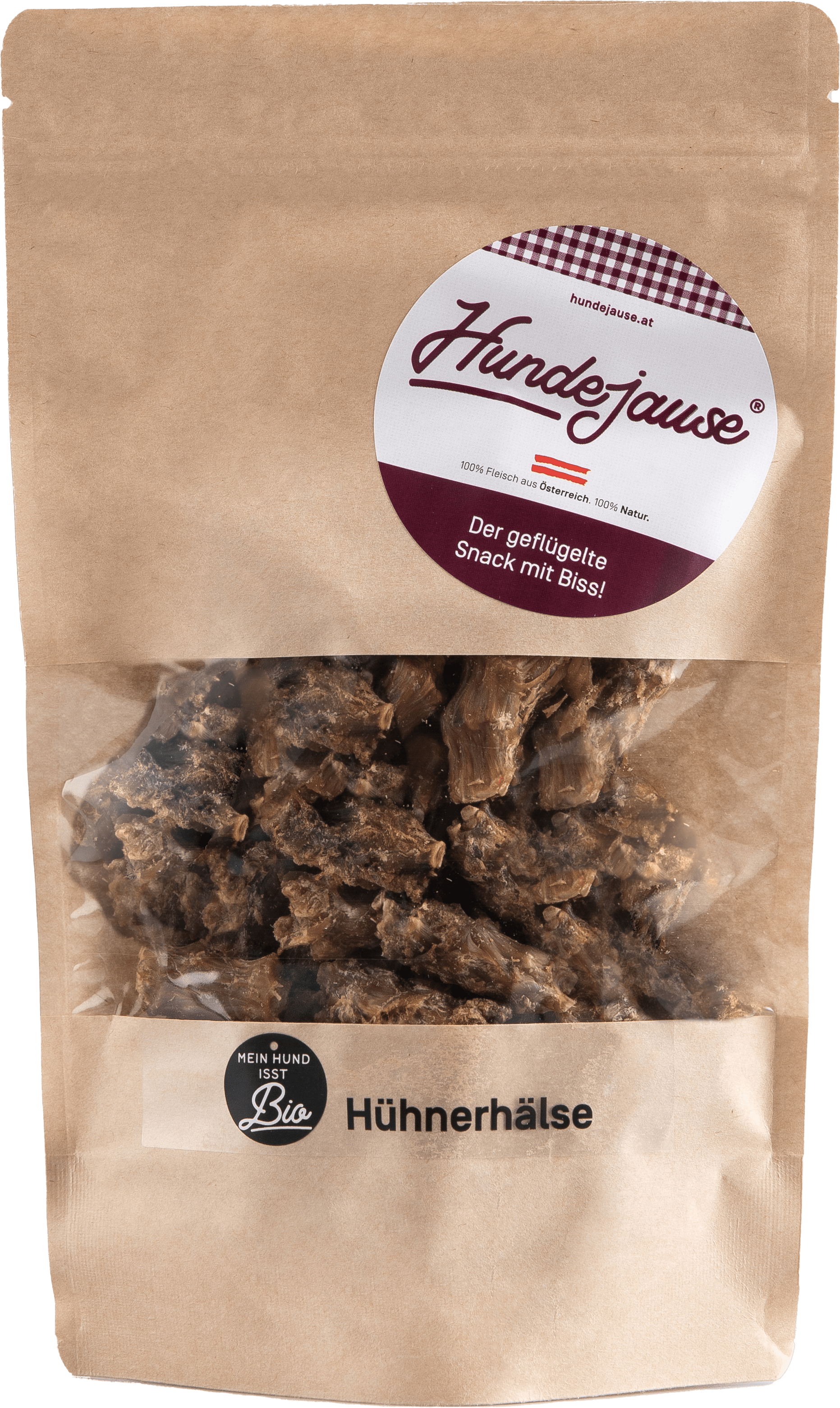 Questo delizioso snack è fatto con colli di pollo austriaci al 100%. Come tutti i prodotti Hundenjause, non contiene conservanti o altri additivi.