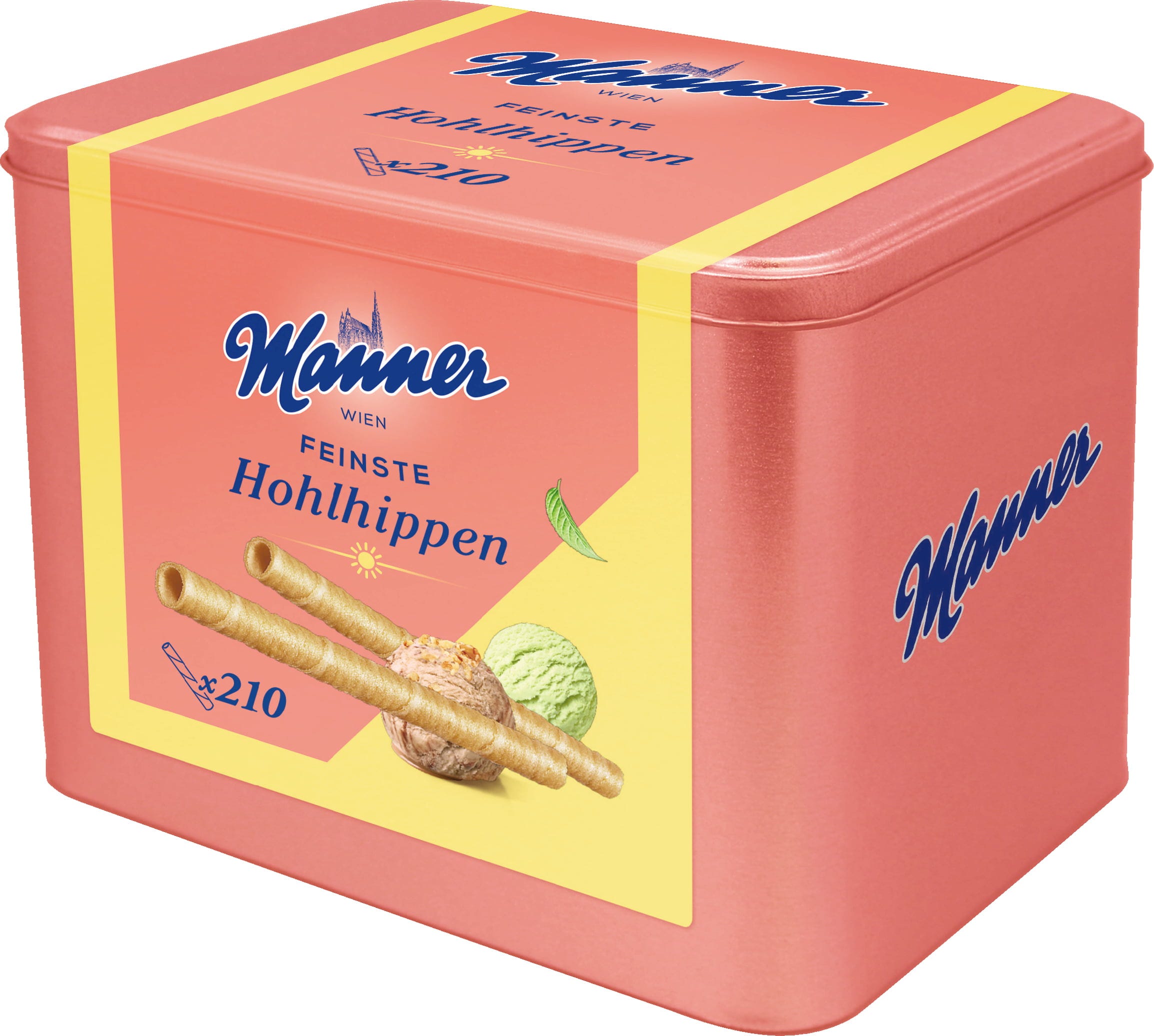 Amatissime dai bambini e anche dagli adulti, le cialde a bastoncino rendono ogni gelato ancora più goloso e bello. Fortunatamente, in questa bellissima scatola in metallo ce ne sono abbastanza per tutta la famiglia! La confezione richiudibile Manner contiene infatti ben 210 cialde a bastoncino, che rimarranno fresche e croccanti fino all'ultimo pezzo. Non ti resta che goderti il tuo gelato!