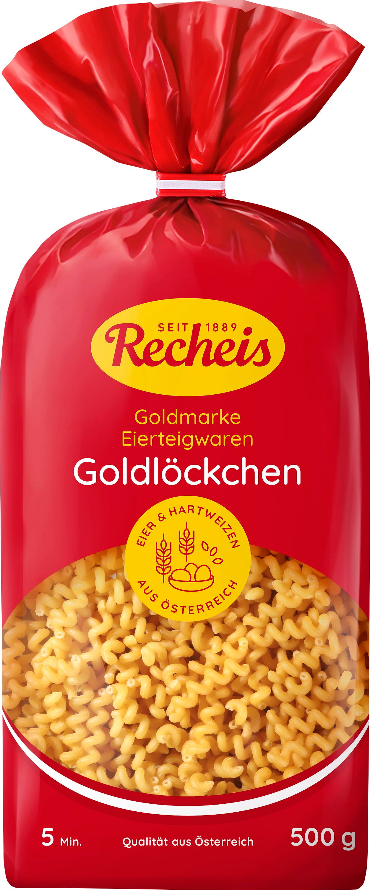 Deliziosa pasta all'uovo in vari formati, perfetta per portare in tavola ogni giorno un primo piatto diverso e gustoso. Prodotta con la migliore semola di grano duro e uova austriache mediante processi di produzione innovativi, la pasta all'uovo di Recheis tiene bene la cottura ed è sempre perfetta per ogni ricetta. Che si tratti di insalate di pasta estive, minestre, sformati o ricette raffinate, con la pasta all'uovo della linea Goldmarke potrai preparare in pochissimo tempo dei piatti semplicemente deliziosi.