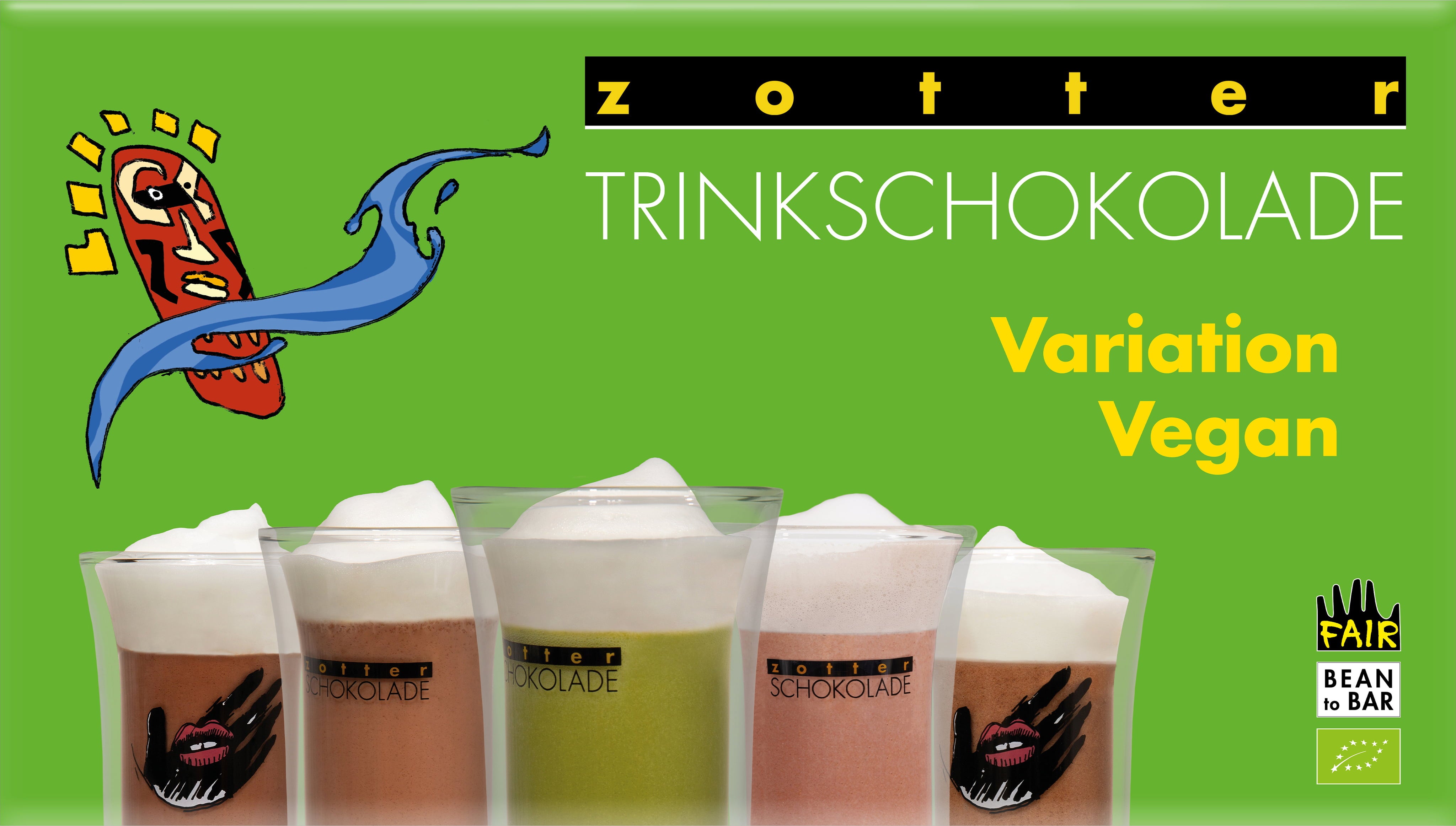 Questa confezione contiene 5 diverse varietà della famosa cioccolata da bere di Zotter, tutte rigorosamente vegan e senza ingredienti di origine animale.