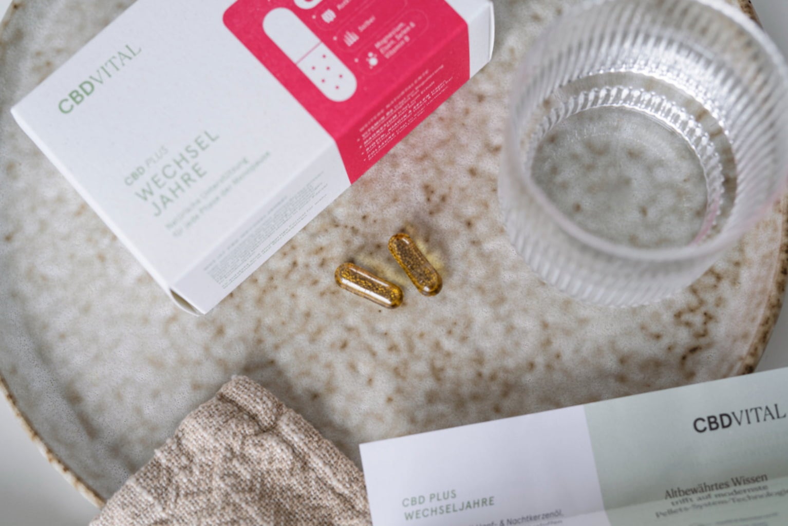 CBD Transizione Donna di CBD VITAL è stato sviluppato per le donne over 40 e combina oli vegetali e nutrienti selezionati in un'innovativa tecnologia a pellet. La speciale composizione combina olio di canapa, olio di enotera, estratti vegetali, vitamine e minerali in una pratica capsula.