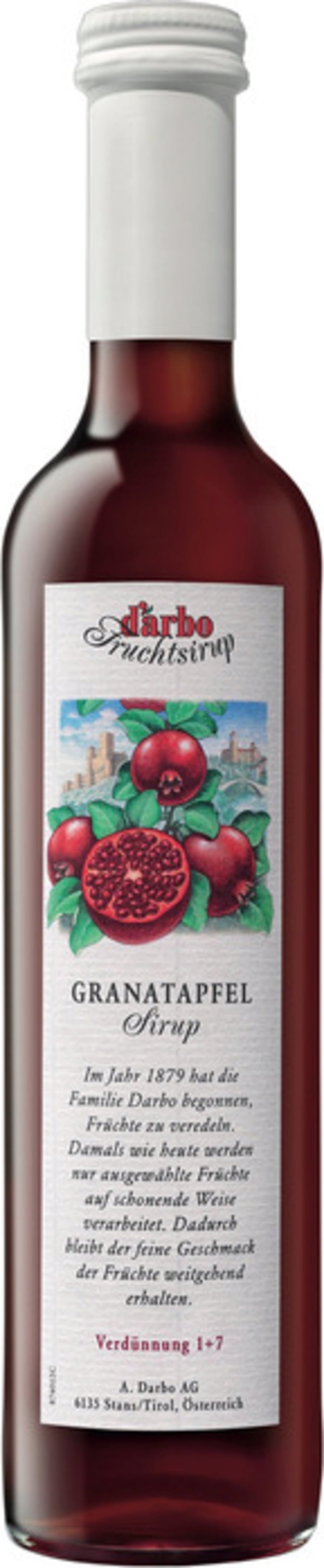 Uno sciroppo di frutta altamente concentrato da diluire con acqua naturale o gassata. Grazie alla lavorazione delicata e al contenuto di frutta dell'80%, lo sciroppo mantiene il sapore caratteristico dei melograni maturi. Come per gli altri prodotti Darbo, la ricetta non contiene né conservanti né coloranti artificiali.