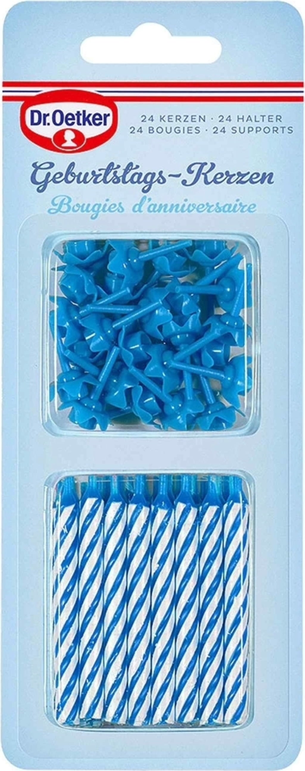 In ogni confezione di candeline di compleanno Dr. Oetker ci sono 24 candeline e 12 supporti per fissarle facilmente su torte o pasticcini. Immancabili per festeggiare compleanni o altre occasioni festive.