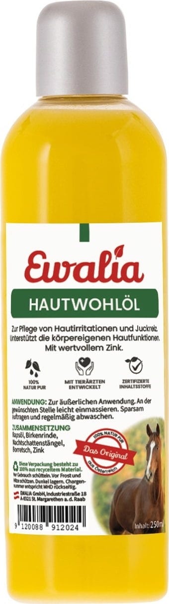 Questo speciale olio di Ewalia è adatto per alleviare le irritazioni e il prurito dovuti all'eczema estivo. Grazie allo zinco infatti, lenisce e rigenera la pelle irritata del cavallo.