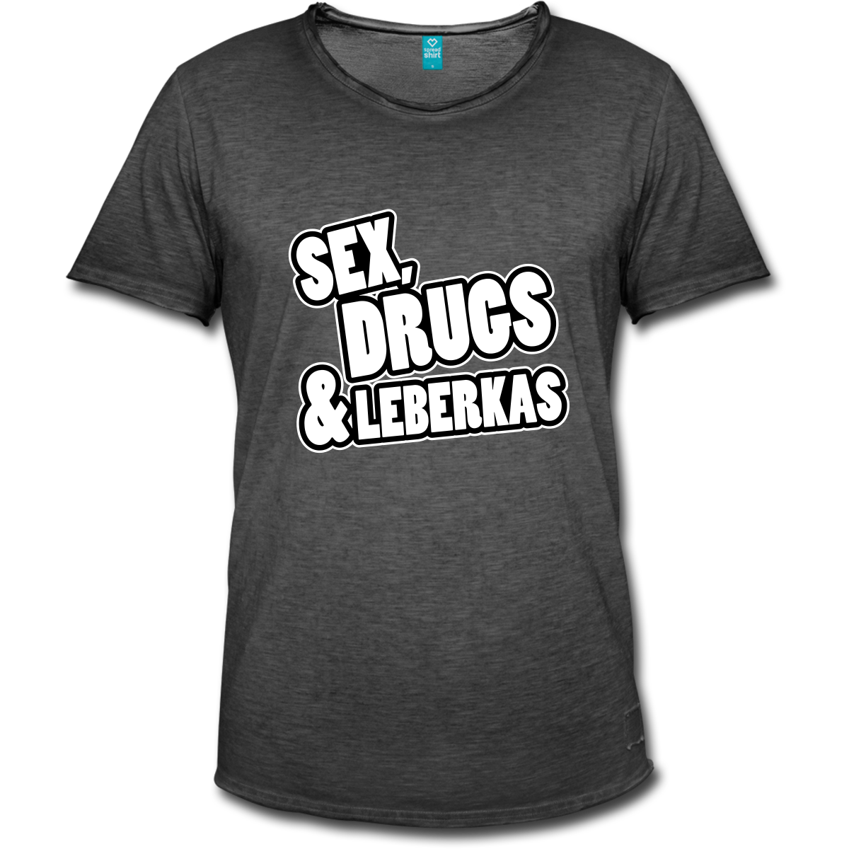 Gscheade Leibal T-Shirt da Uomo - Sex, Drugs & Leberkas - Nero Vintage