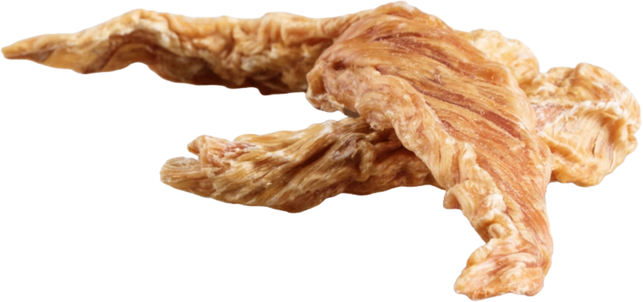 Delicatamente essiccate, le strisce di filetto interno di pollo sono una meravigliosa fonte di proteine. Sono costituite da filetto interno 100% puro e nient'altro.