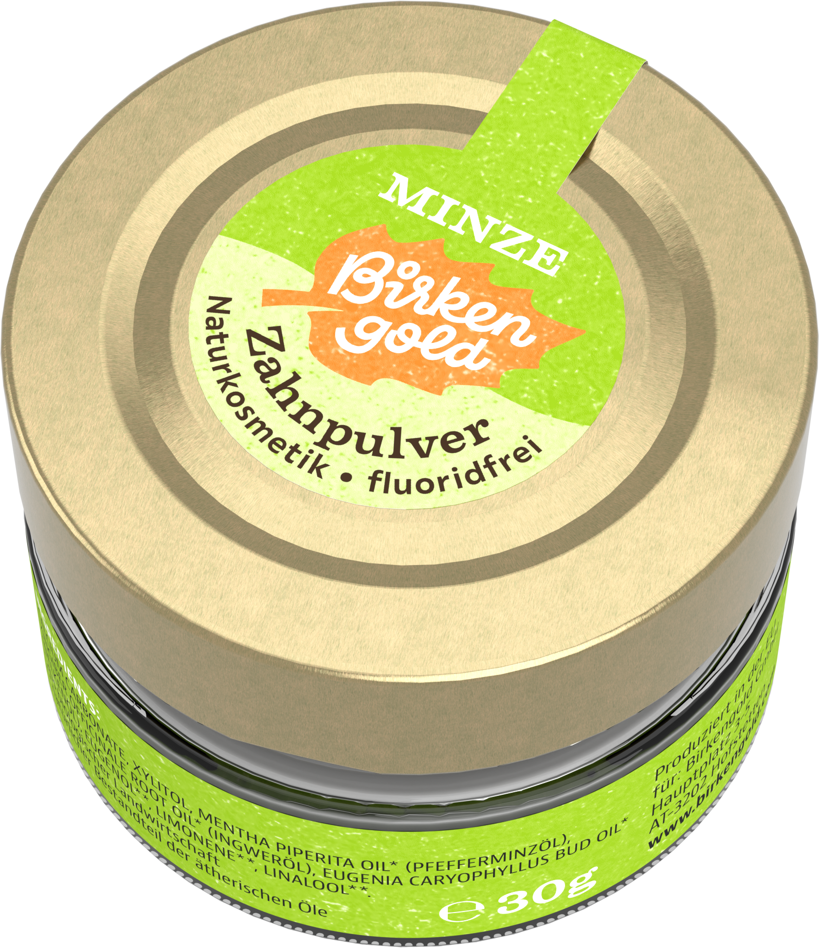 Het tandpoeder met Birkengold® xylitol en verfrissende muntsmaak is niet alleen geschikt voor volwassenen, maar ook voor kinderen vanaf 1 jaar. Samen met calciumcarbonaat en essentiële oliën reinigt het mild, behoudt het tandglazuur en bevordert het een alkalisch milieu in de mond - slechte omstandigheden voor cariës en parodontale bacteriën!