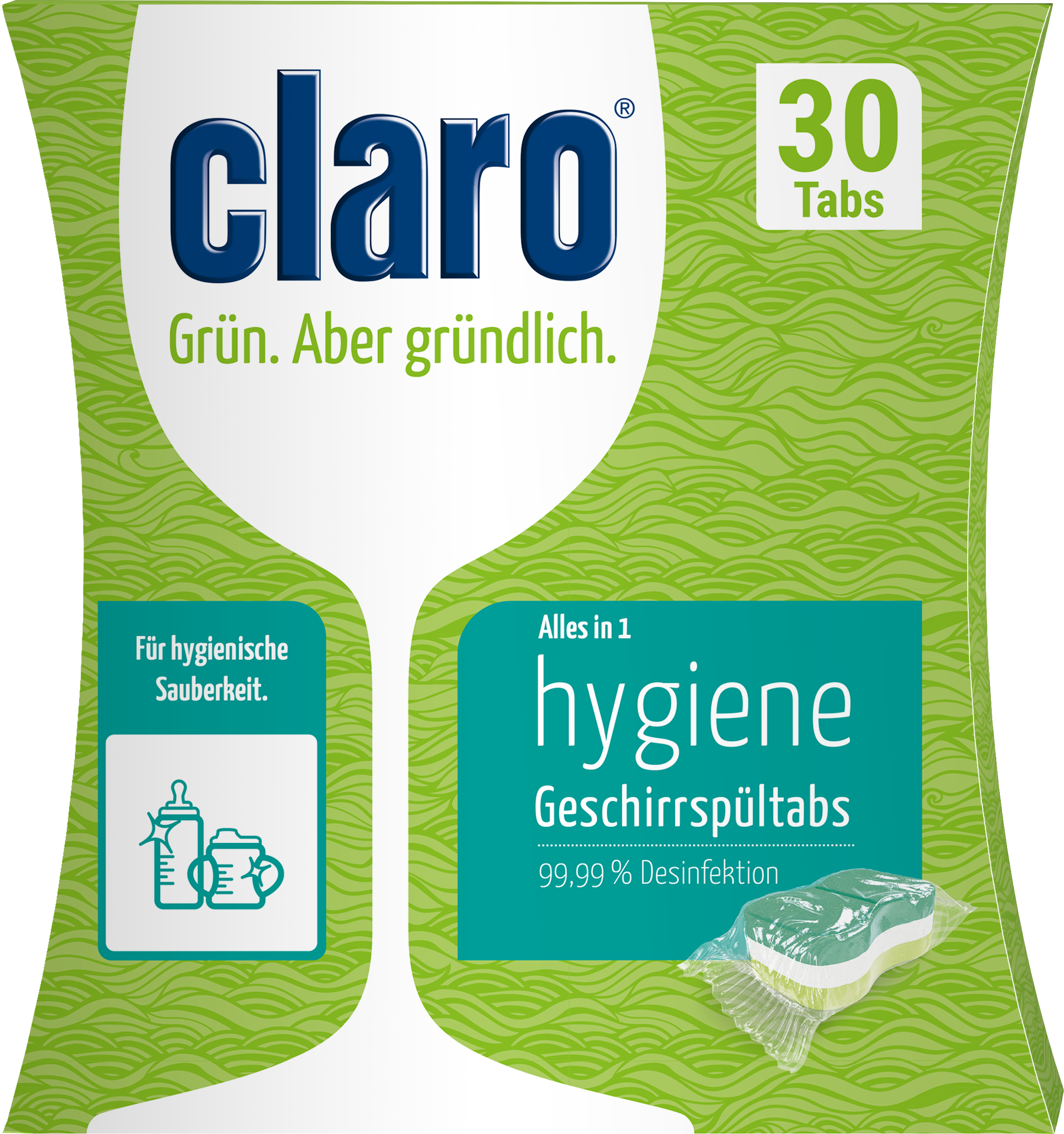Voor maximale reinheid verwijderen de claro-hygiënetabletten 99,99% van alle schimmels, virussen en bacteriën. Ze zijn ook ideaal voor mensen met allergieën. Zuigflessen en babyschalen zijn met slechts één wasbeurt hygiënisch schoon en de tabs kunnen natuurlijk ook voor conventioneel servies worden gebruikt. Zo kunt u alle voordelen van de tabbladen in het dagelijks leven combineren.